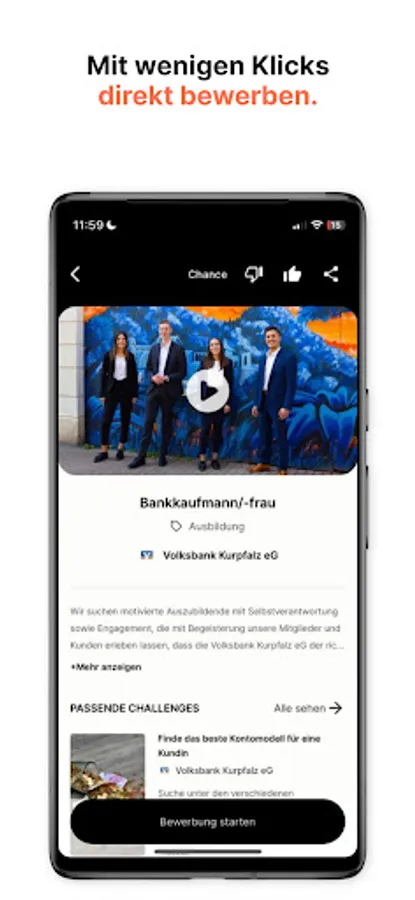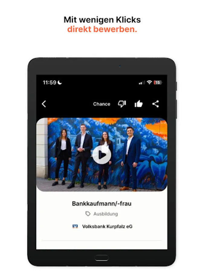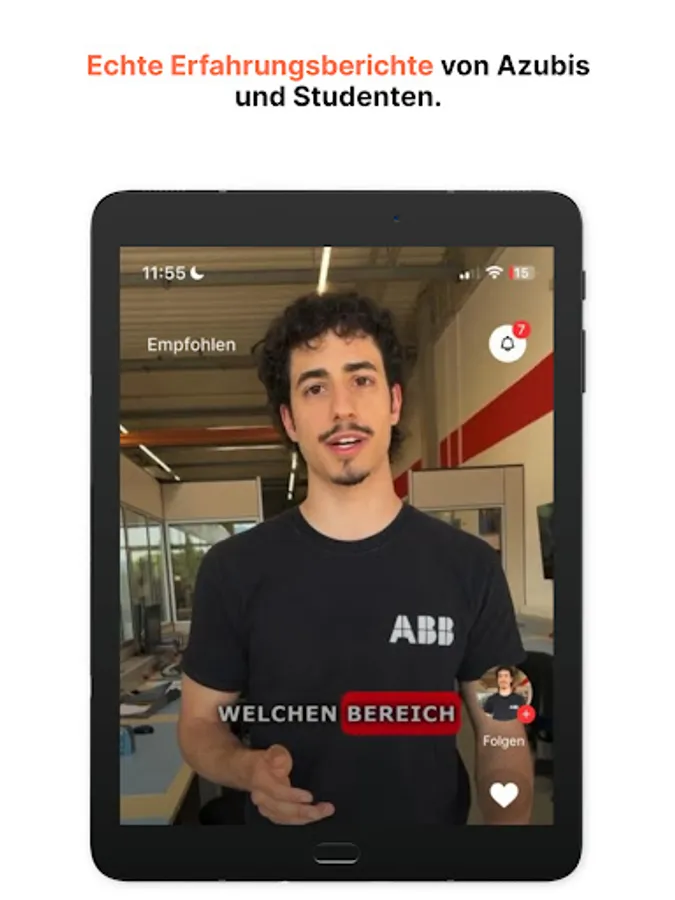 - Current trainees and students show you their everyday life in short videos and answer your questions.