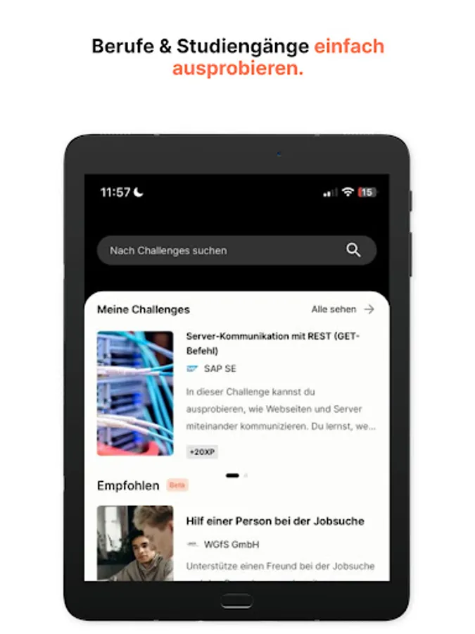 - In Challenges you can try jobs and courses from home and find out if it really suits you.