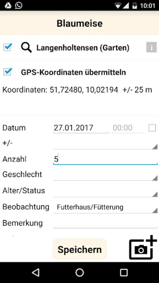 The app "Birds at the feeding house" is primarily a tool for you as observer of nature, with which you can determine on your Futterplatz common species and can capture your observations professionally, in order to subsequently transferred to naturgucker.de or nabu-naturgucker.de. This process saves over the classic note-taking and subsequent data capture on PC considerable time.