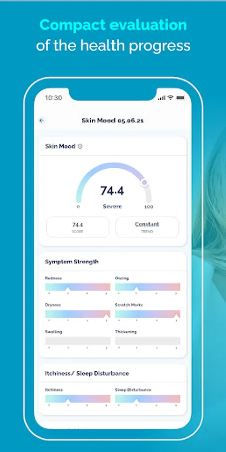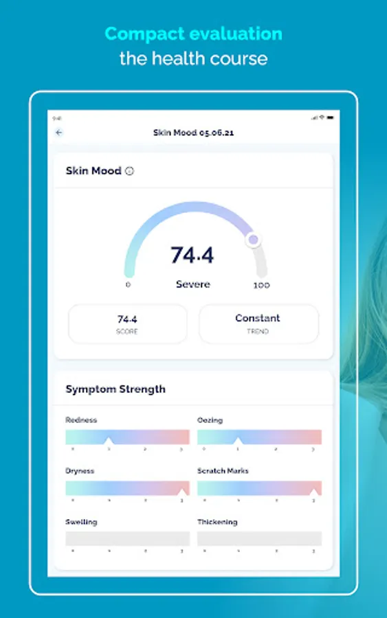 Mark affected areas on the body diagram, take photos and document the current severity of the eczema. In this way, you and your doctor will have the best possible overview of the course of your health.