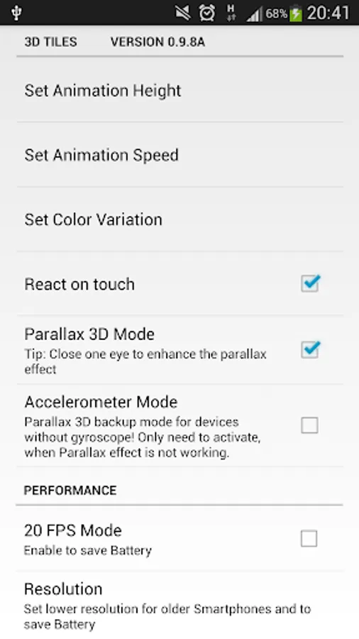 A high-resolution live wallpaper with 3D animated tiles in varying shades and amazing looking Parallax 3D effect. 3D Tiles uses the same 3D effect like IOS 7.