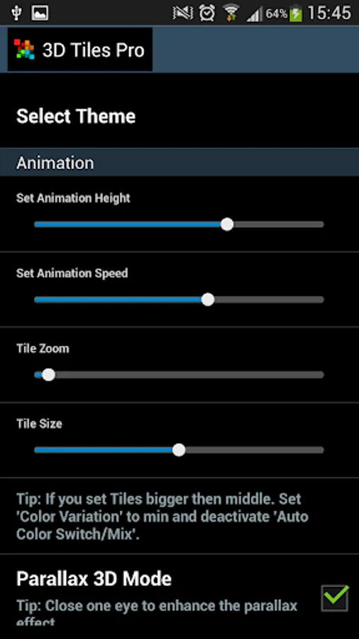 A high-resolution live wallpaper with 3D animated tiles in varying shades and amazing looking Parallax 3D effect. 3D Tiles uses the same 3D effect like IOS 7.