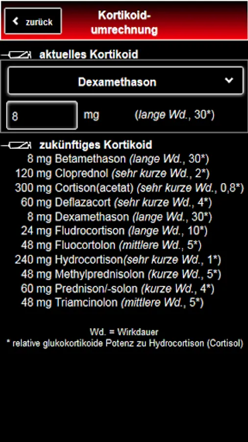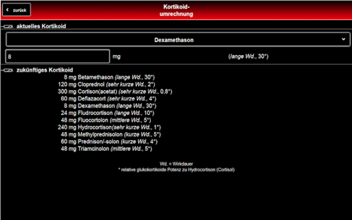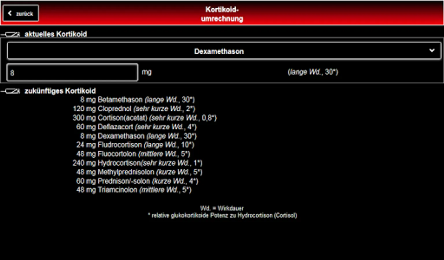 - Conversion on the basis of glucocorticoid potency with effective length specification