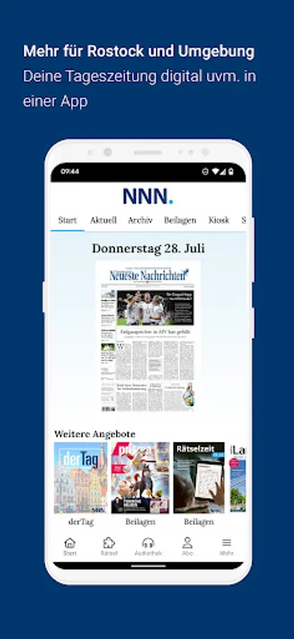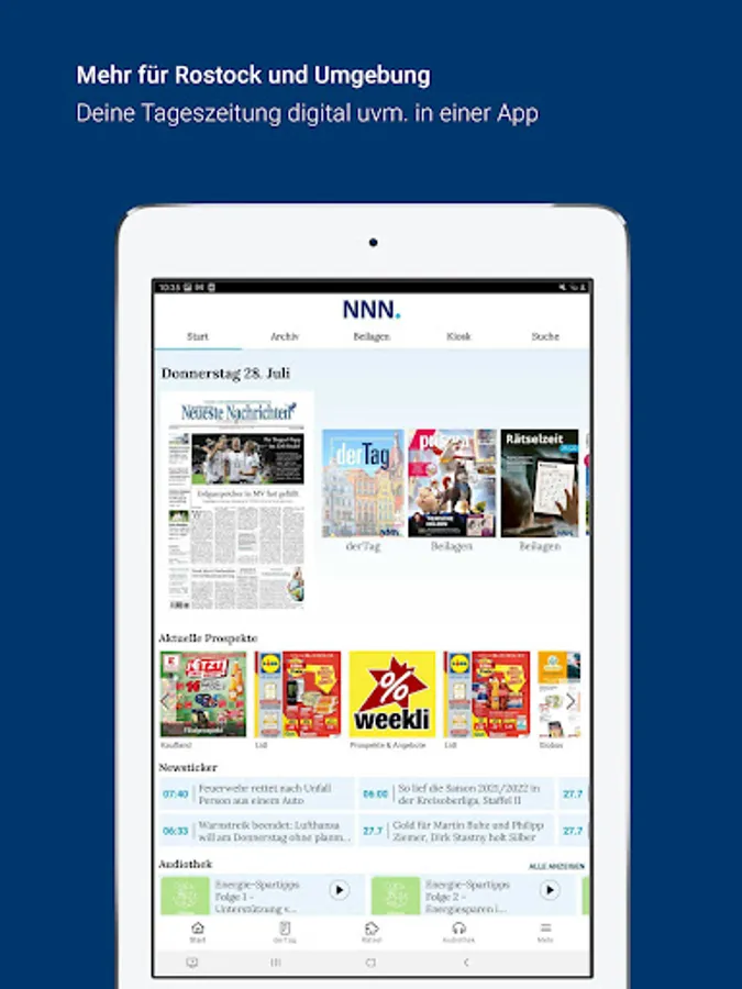 Your local daily newspaper optimized for Android tablets and smartphones. Scroll through your local daily newspaper as usual in the practical reading mode. The NNN E-Paper - News for Rostock.