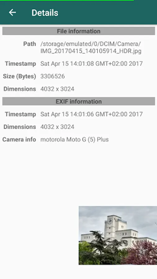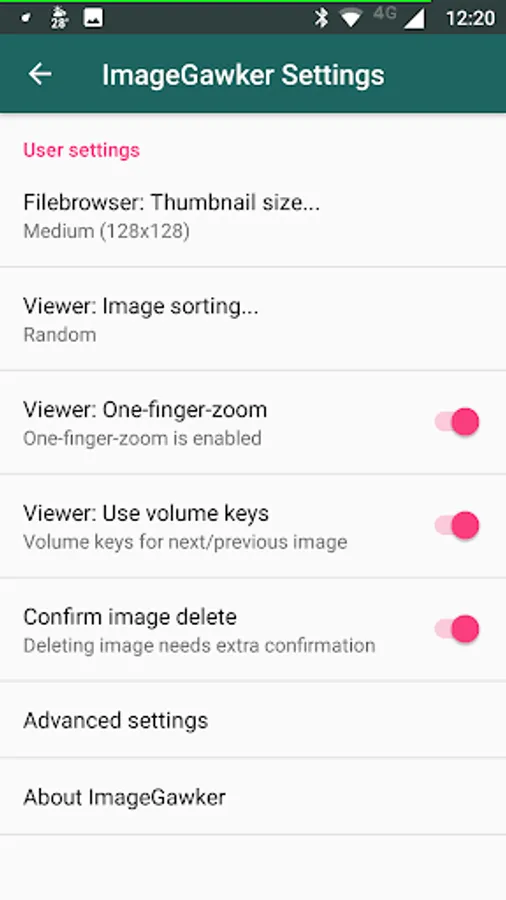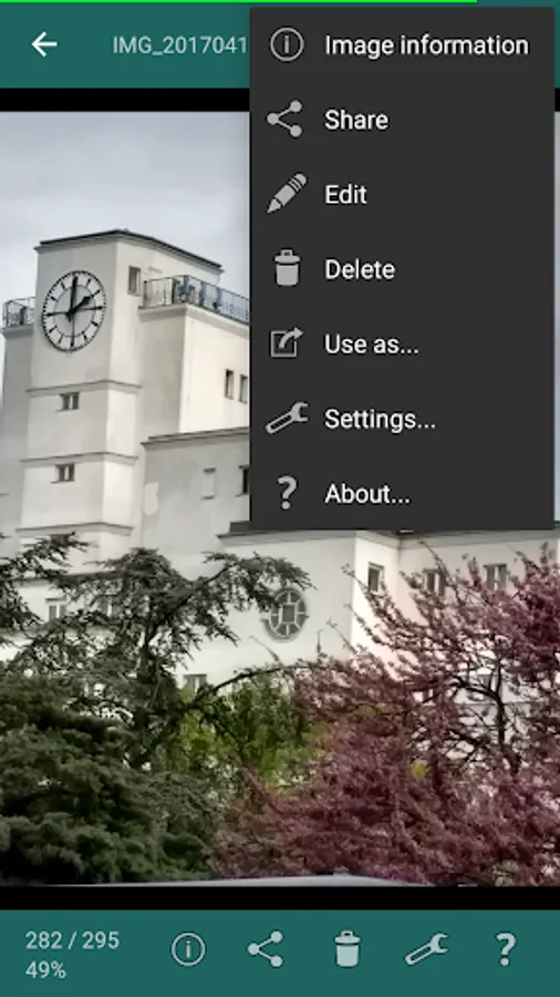 Single-tapping the image will take you to the image activity screen where you can switch over to an information screen, share the image, edit, or delete it (not yet implemented!). The menu also gives you access to the preference page and an about screen where I boast about how cool this little program is, etc...