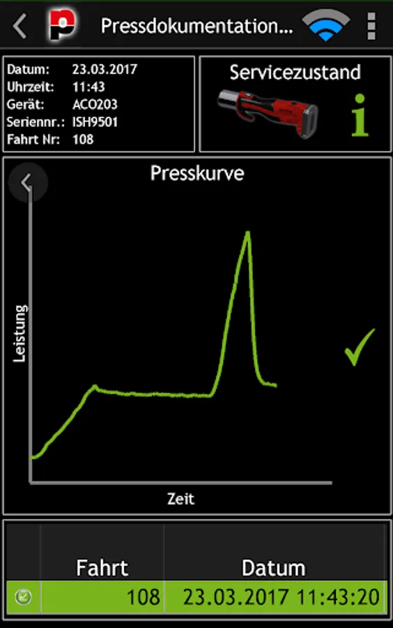 The possibility of a device check as well as an evaluation of the log book provides you with a brief overview of your press device. The implemented report function also offers the possibility to document executed press cycles by generating a construction site report. This report is stored in the app and can be retrieved, emailed or printed at any time. Use the NovoCheck app to connect to your press device and get started.