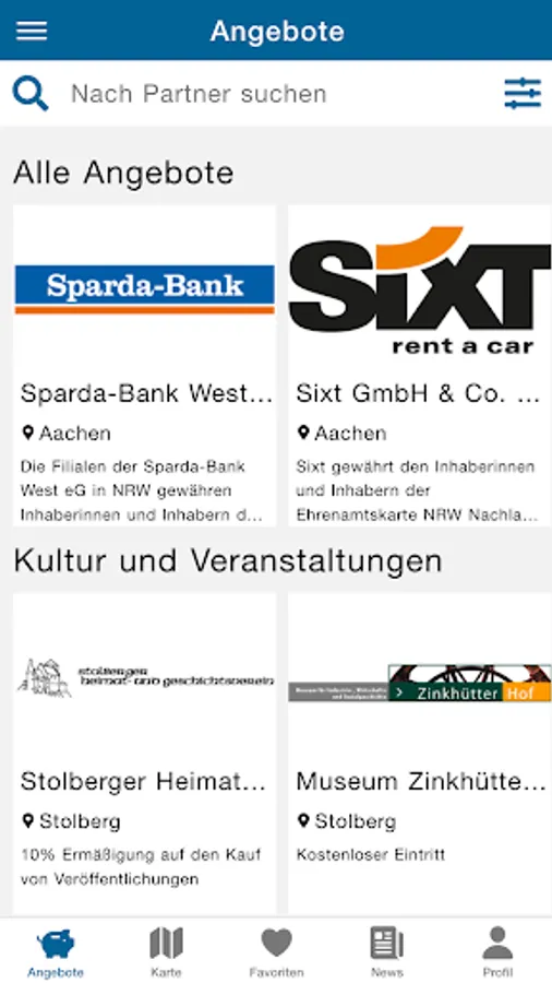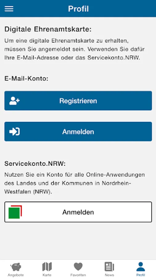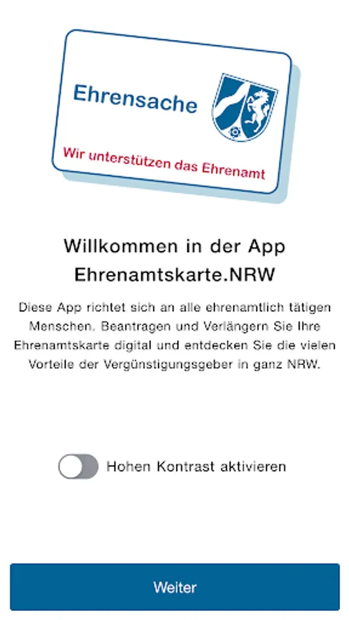The app supplements the online offer from https://www.engagiert-in-nrw.de/ehrensachenrw with the option of calling up discounts via smartphone.