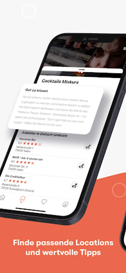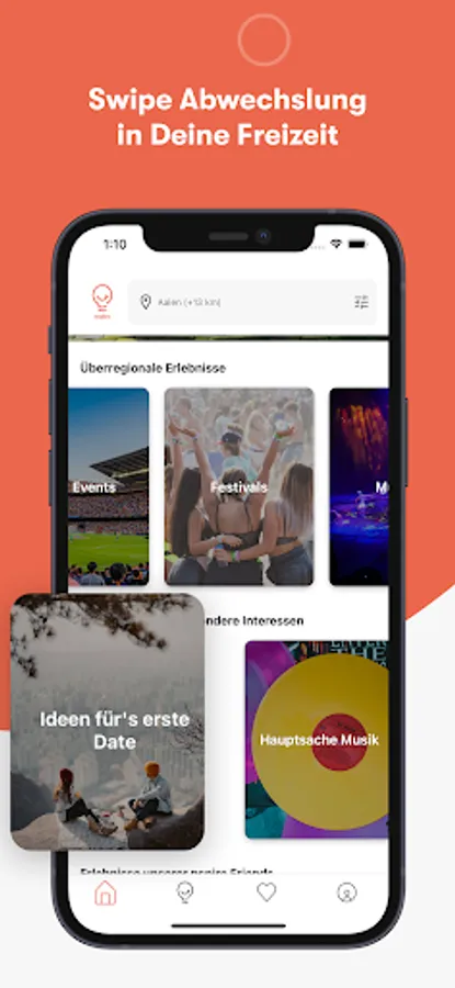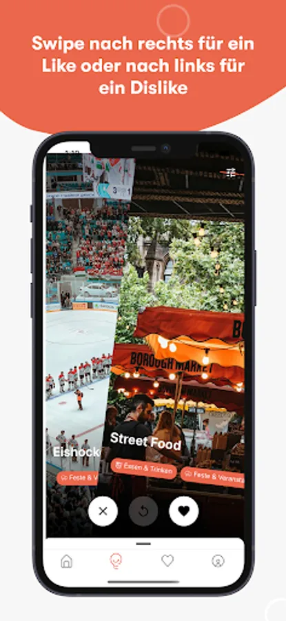 You can easily decide with a swipe whether you like the nspire suggestion or not. Swipe right for a like and save your favourites. If you don't like a suggestion, simply swipe to the left - we'll remember it for your next search.