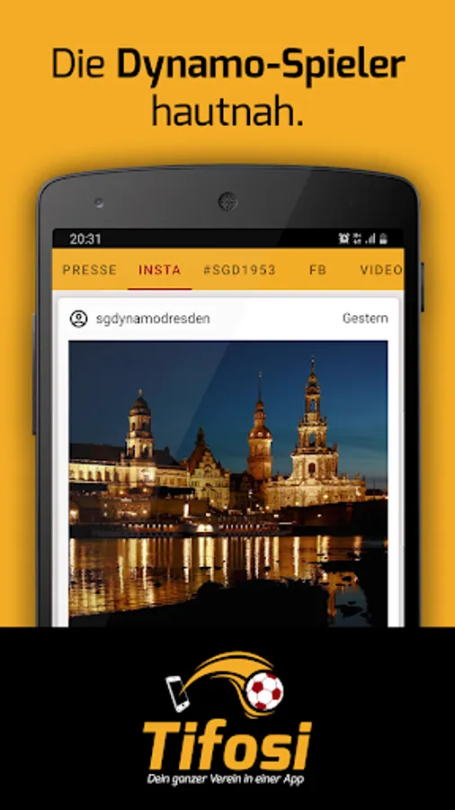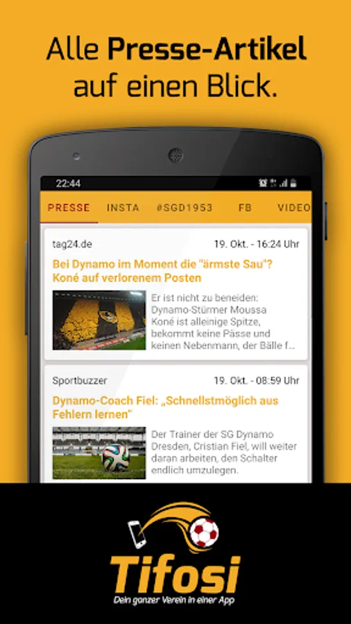 With "Tifosi Dynamo" for Android you always have the latest news on Dynamo Dresden in view. Choose from more than 50 sources, which would like to receive Dynamo content you. More SGD in an app does not work!
