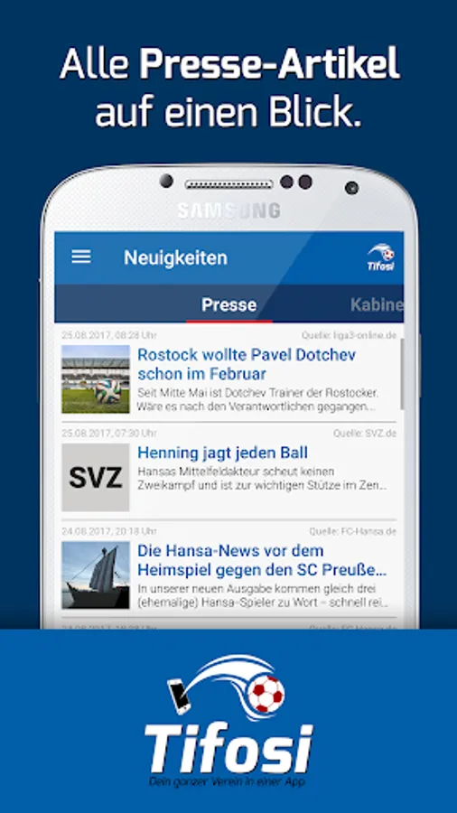 With "Tifosi Hansa" for Android you always have all the news about Hansa Rostock in mind. want to receive Choose from over 50 sources from which FC Hansa content you. More Hansa Rostock in an app does not work!