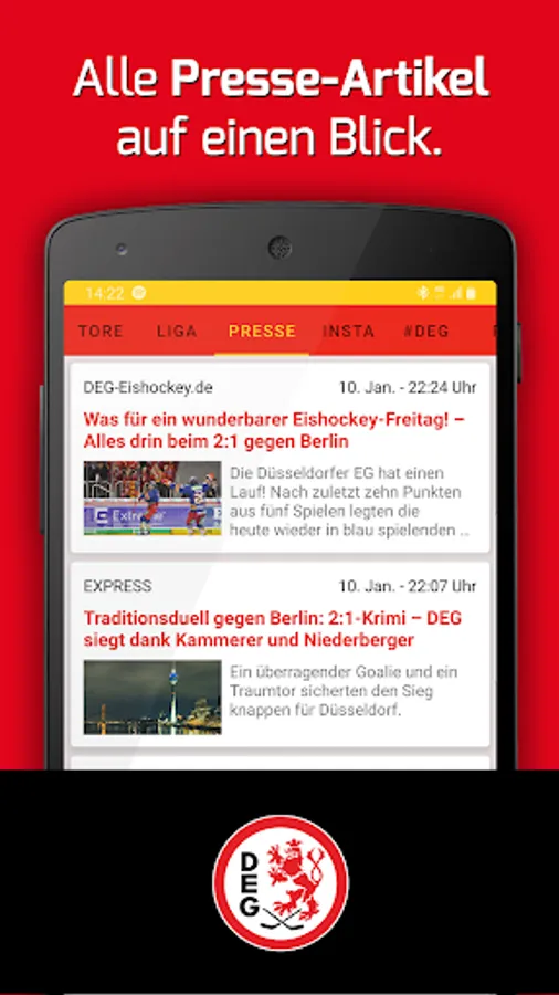 DEG News for Android always offers you all the news about the Düsseldorf EG and its players from over 30 sources at a glance.