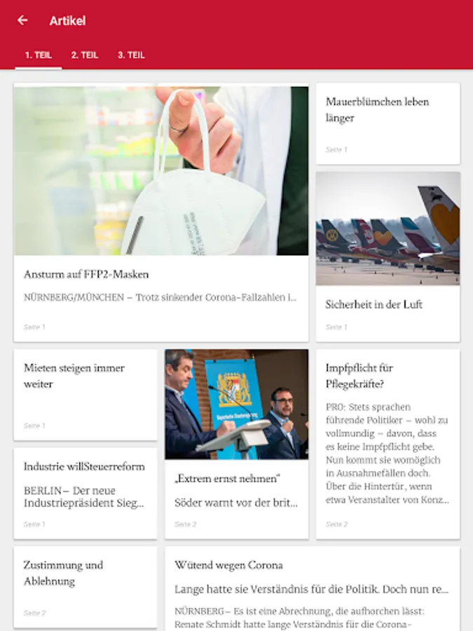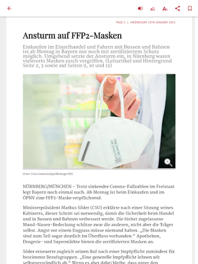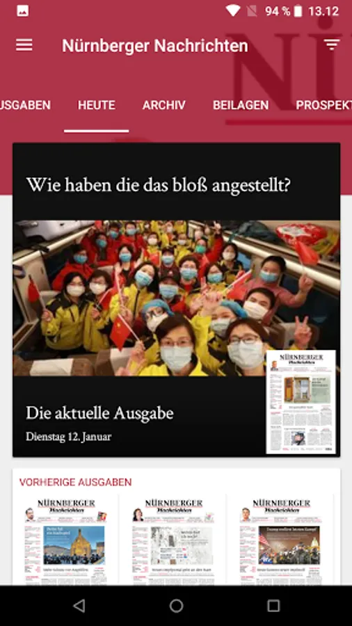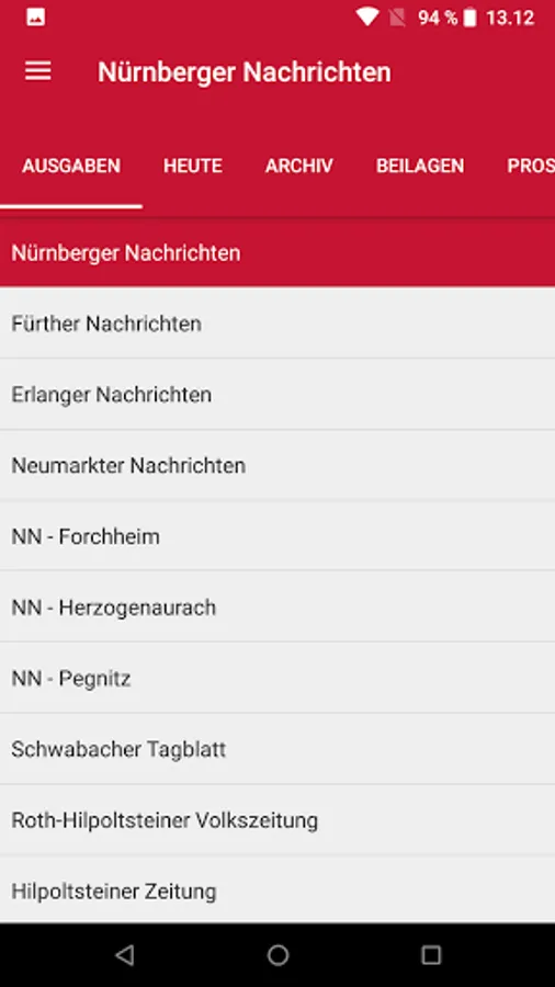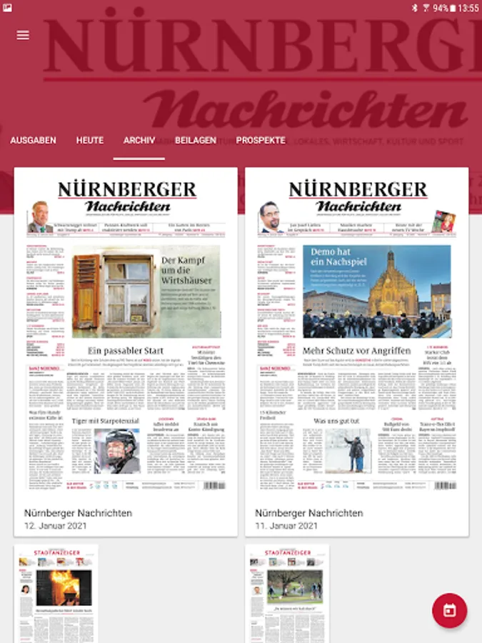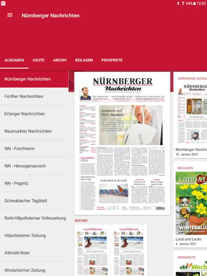 The following editions are available for you in the kiosk of the Nuremberg news app: