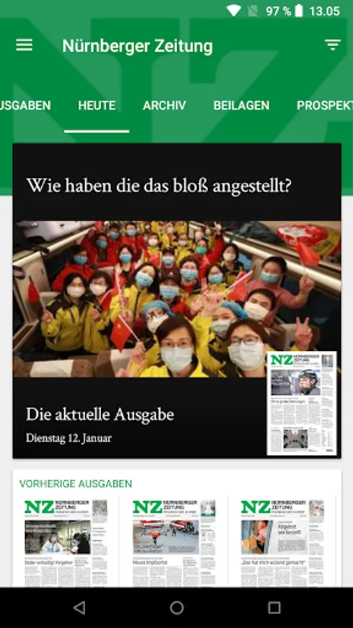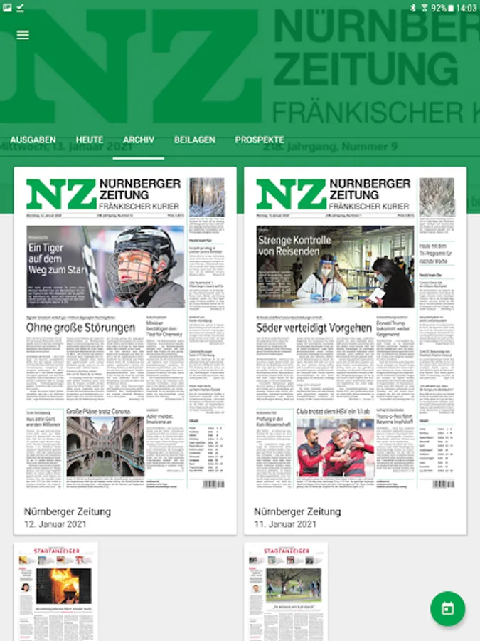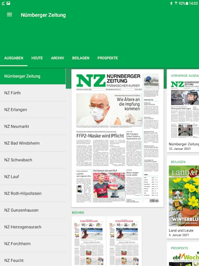 The following issues are available for you in the kiosk of the Nürnberger Zeitung app: