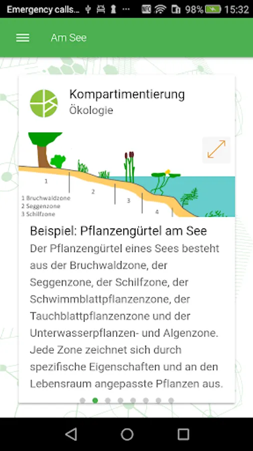 In addition, the app includes a more basic introduction to the topic Text basic concepts. This explains how the basic concepts at the cumulative network, can help learning. At the two examples "Wolf" and "lake" is shown as a biological fact can be considered on its references to basic concepts.