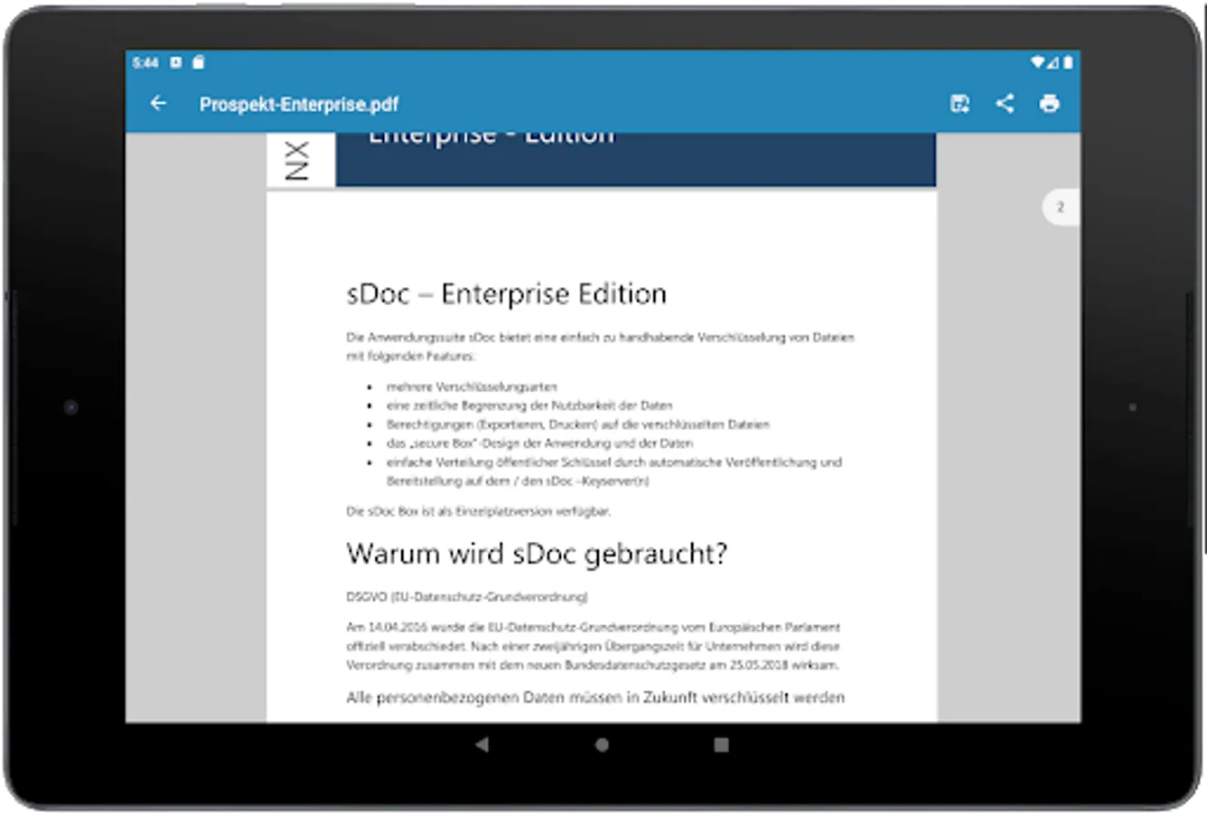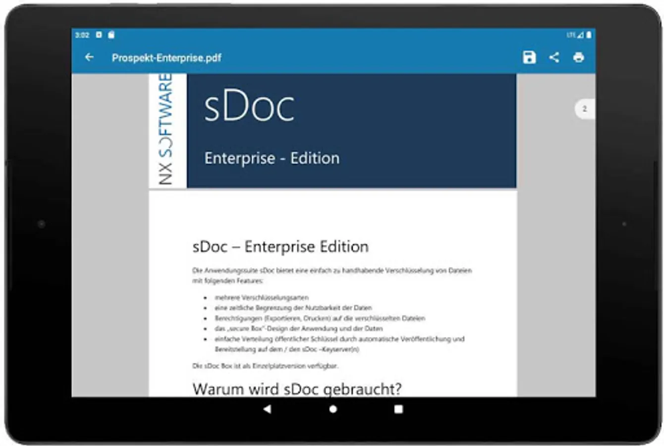 With the sDoc Editor for Windows you can create sDoc files on a commercial scale quickly and easily and send them to every customer. They can easily open the encrypted files with the sDoc Editor app and send their own files back to you encrypted as sDoc files. The special display of your company data in the sDoc Editor app when you open your encrypted sDoc files, you achieve additional customer loyalty. In this way, compliance with the regulations for the encryption of personal data according to Art. 32 GDPR is also very easy in the commercial sector.