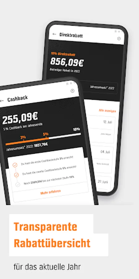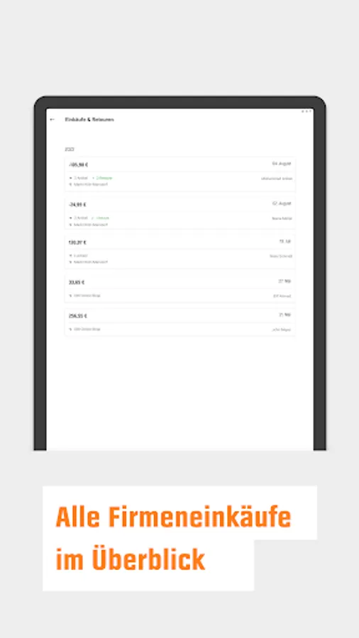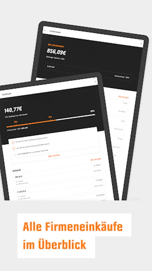 Whether online or in participating OBI stores on site: Every purchase with the digital heyOBI professional customer card is automatically saved in the company account. Here, as a company account holder, you can find a detailed and article-specific overview of all purchases and returns from you and your employees at any time.