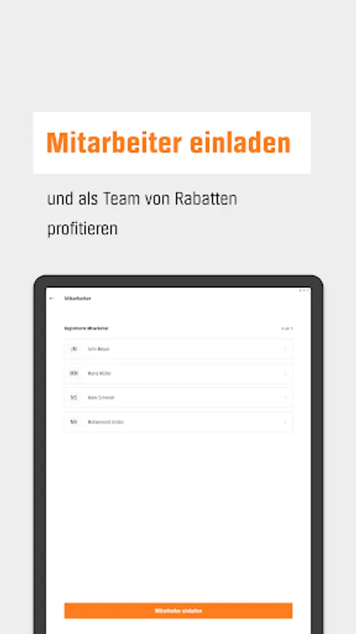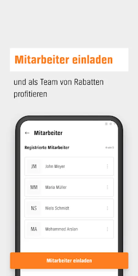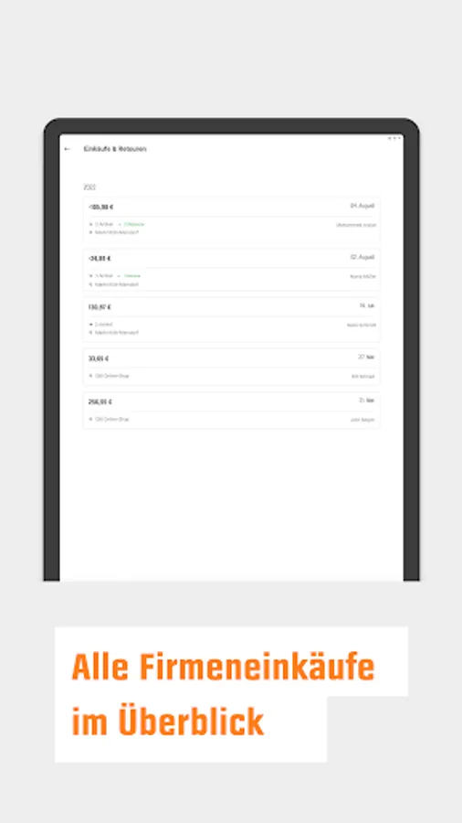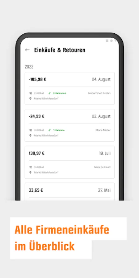 Invite your employees to your heyOBI professional company account. Everyone gets an employee account with a personal, digital customer card and you have an overview of all purchases and returns at all times.