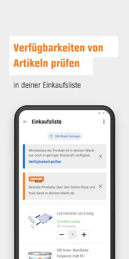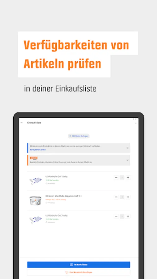 Whatever you need for an upcoming order - pack everything clearly on your heyOBI professional shopping list and prepare your next purchases conveniently. Available quantities are displayed directly for each product.