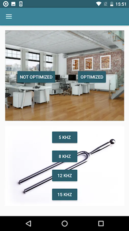 Simulation of acoustics before/after optimizing in a example room plus test of your hearing ability in different frequency ranges.