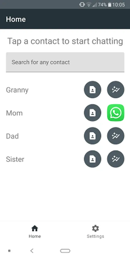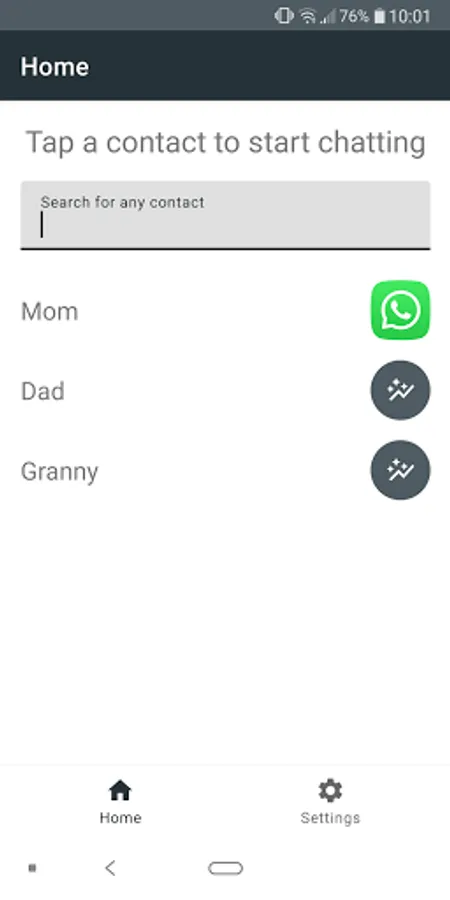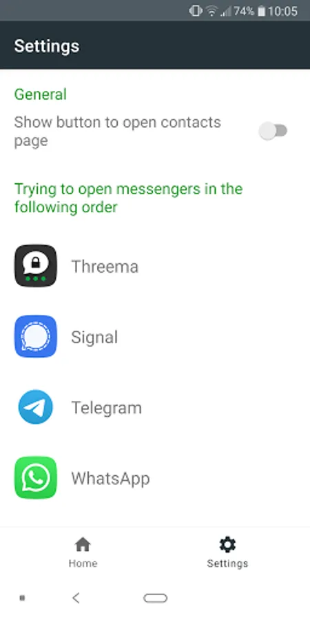 When you tap a contact, the app tries to open a chat with this contact inside your favorite messenger. If the contact doesn't use that messenger, your second favorite messenger will be opened and so on.