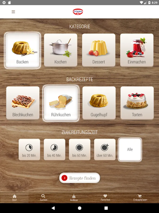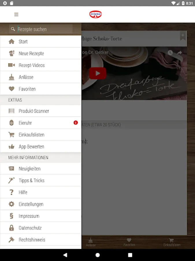 Using the practical search function, special recipes, but also gluten-free, vegan and vegetarian recipes can be found very easily. The main menu also gives you easy access to around 100 video recipes from Dr. Oetker, who will definitely make you want to cook at home.