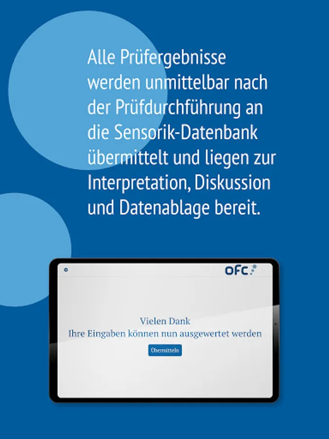 With the OFC Pro-Senso app, processed data is immediately available for discussion of results, presentation and documentation. It enables real-time data transfer via the OFC IT system and guarantees enormous time savings and error reduction by eliminating paper-based test sheets and result evaluations.