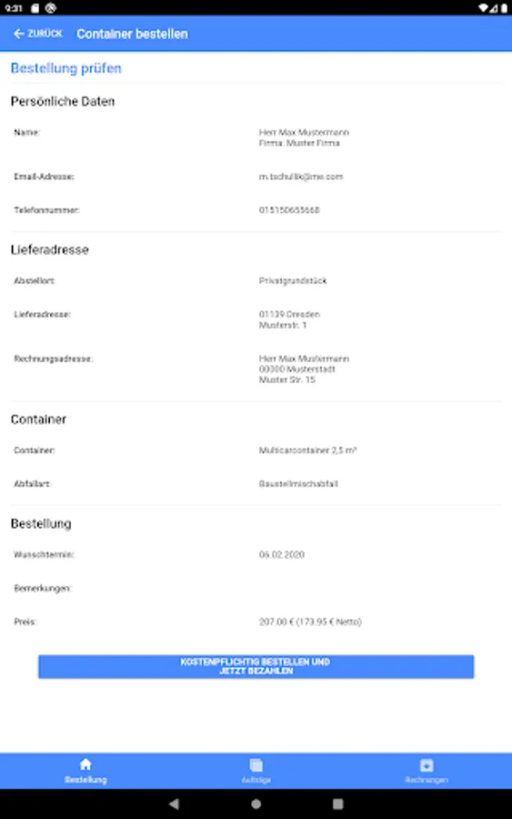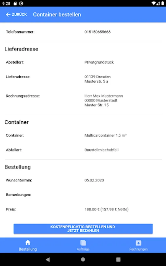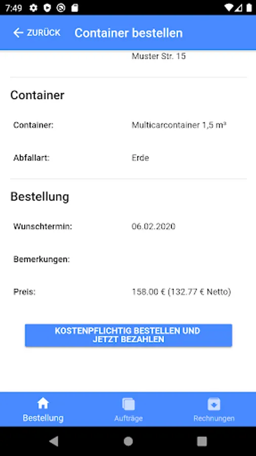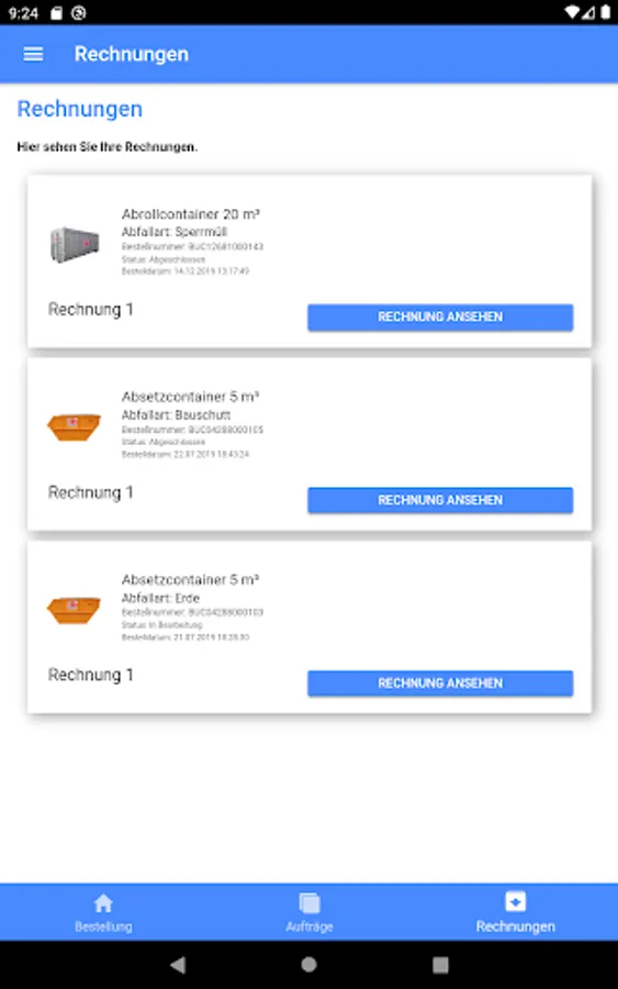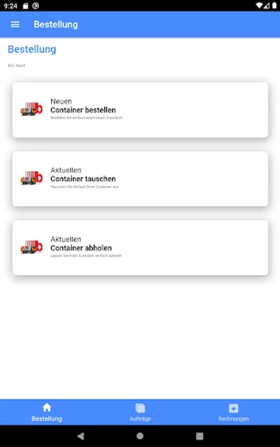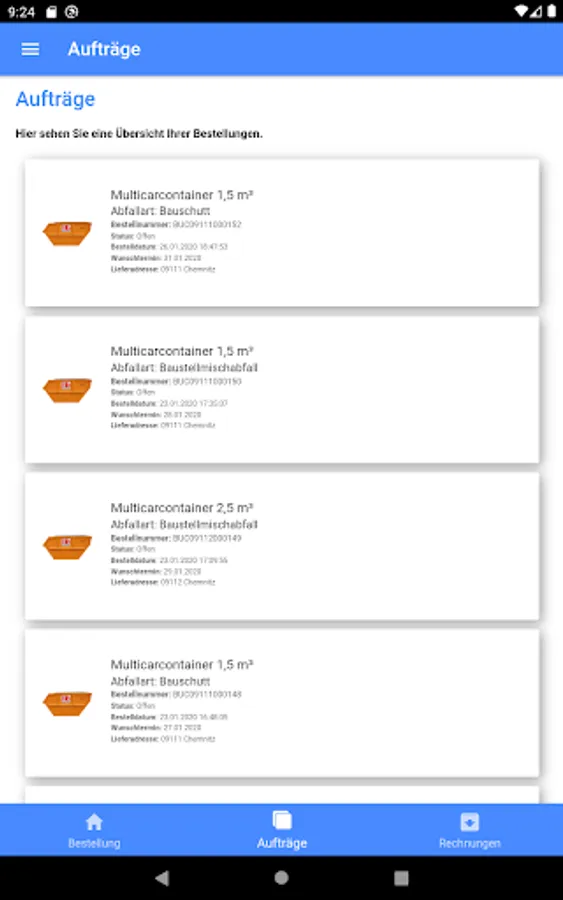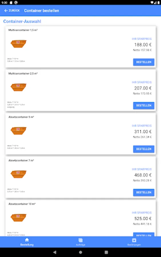 With this app you can easily book our available containers and bins (stacker, dispenser, multicar) with your type of waste. Easily select your delivery location, desired date and time from home or on the go, and pay for it via PayPal. The collection of your container can then also be ordered via the app. Regardless of whether you are a private or commercial customer, you all benefit from this efficient, time-saving and relaxed work.