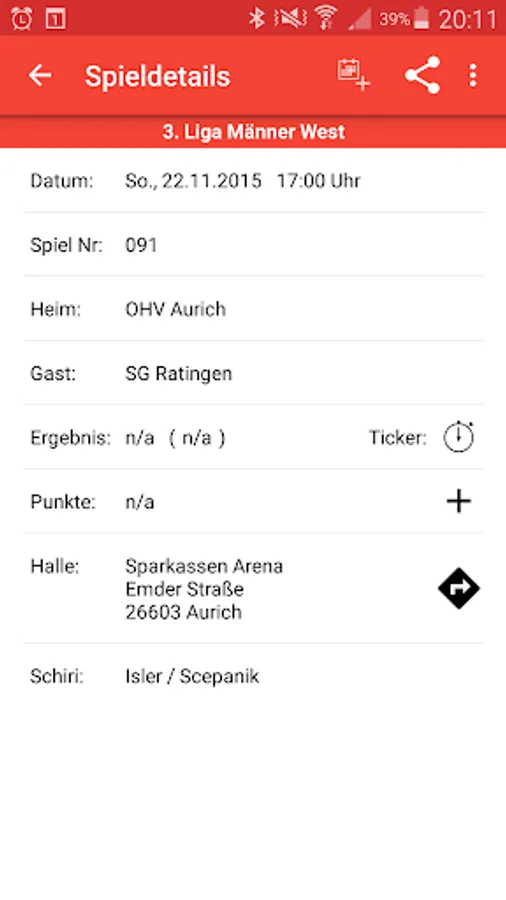 - Match Calendar to display the next home games all OHV Aurich Teams