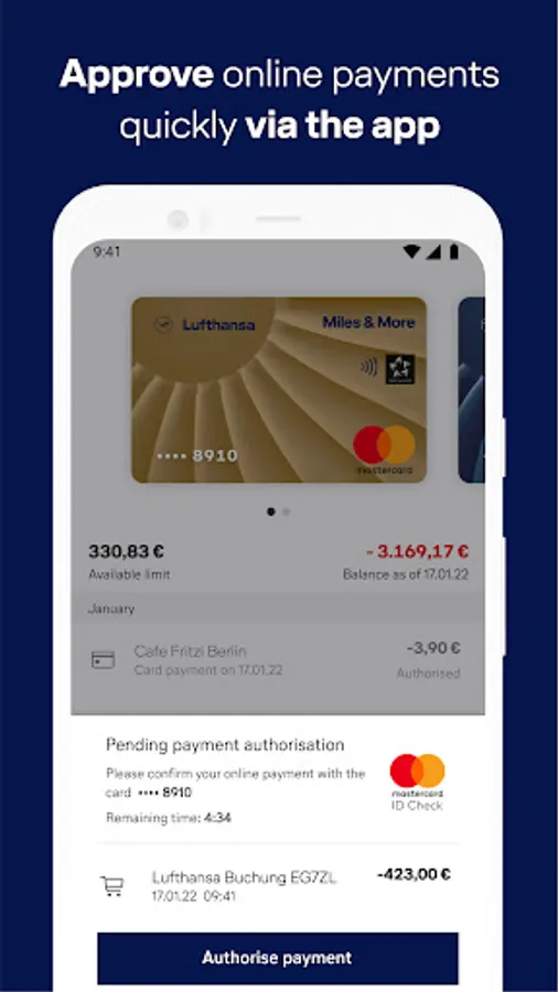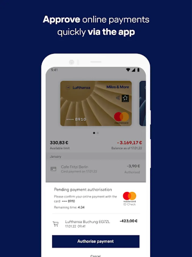 • Mastercard® Identity Check™ process to confirm your online payments securely and conveniently via the app