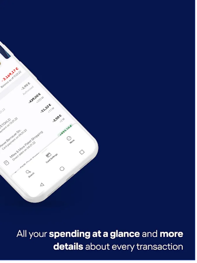 • Real-time banking experience thanks to push notifications for every transaction and real-time transaction display