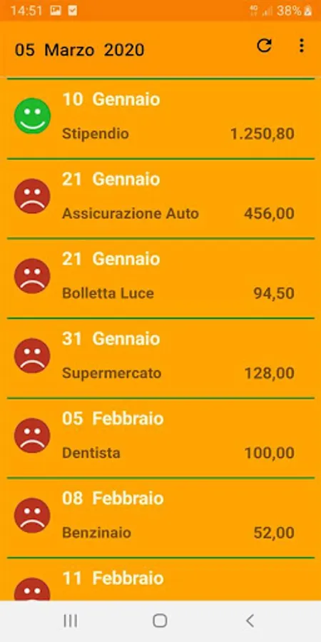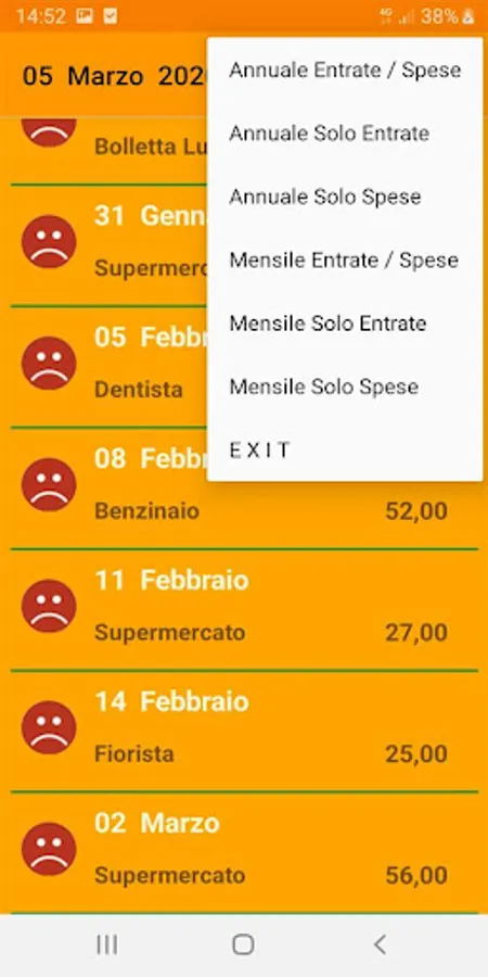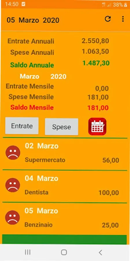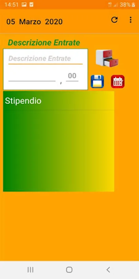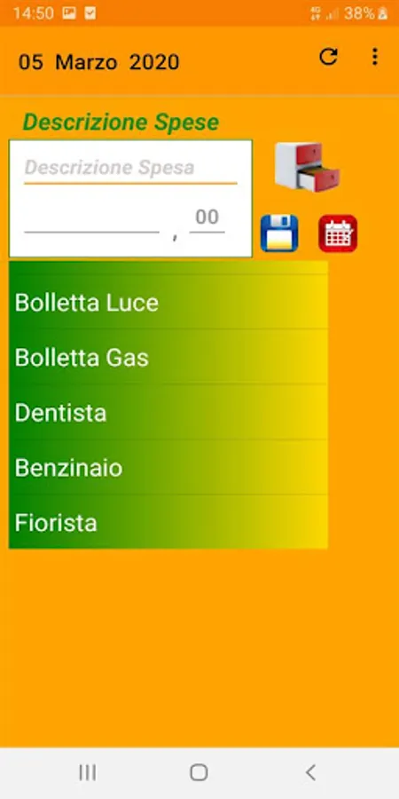 It includes an archive of income descriptions and one dedicated to expense descriptions, avoiding the need to write every time, clicking on the archive icon opens the pop-up panel, just a light pressure is needed to add the desired item, more prolonged pressure and it is possible to delete it from the the archive, in the case of first use, the archive will be empty, you need to type the desired item from the keyboard, to confirm the movement, the description is added to the archive if it does not already exist,