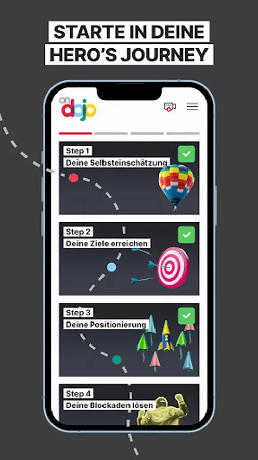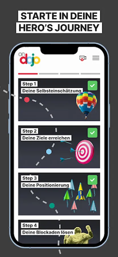 ondojo is your personal, virtual training room for job and mindset. The app helps you to recognize your strengths through self-reflection, to release blockages and thus to activate your full potential. You train and expand your skills and competencies in a playful way and learn to apply them in everyday life.