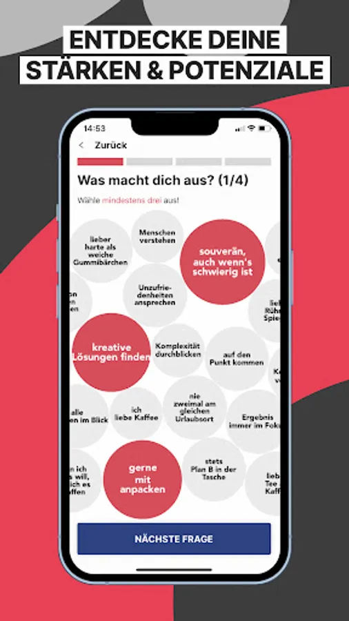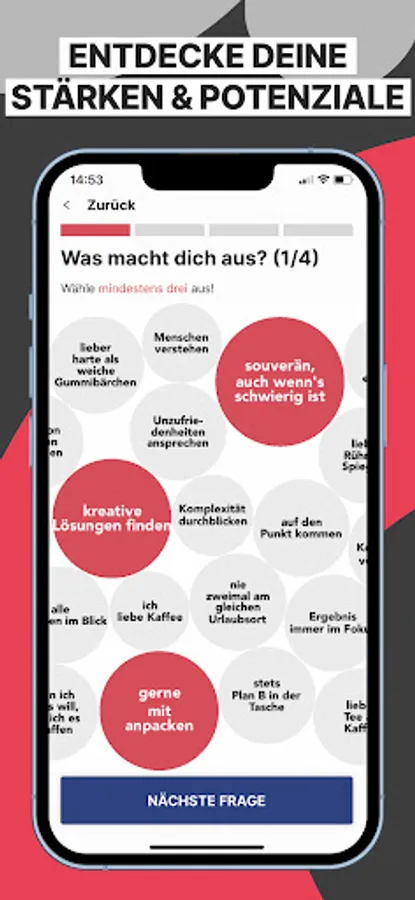 ▻ The app helps you to unfold your hidden strengths and potential and to promote them in a targeted manner.