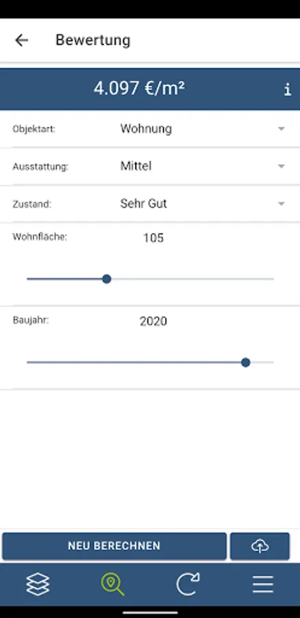 With the STmate smartphone app, you can make value indications quickly and easily on the go and you always have the most important cards with you. For detailed processing and reports, value indications can be transferred directly to STmate in portfolios. The value indication in the STmate app uses your mobile contingent. When transferring to a portfolio in STmate, your STmate quota will be used.
