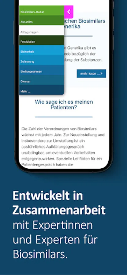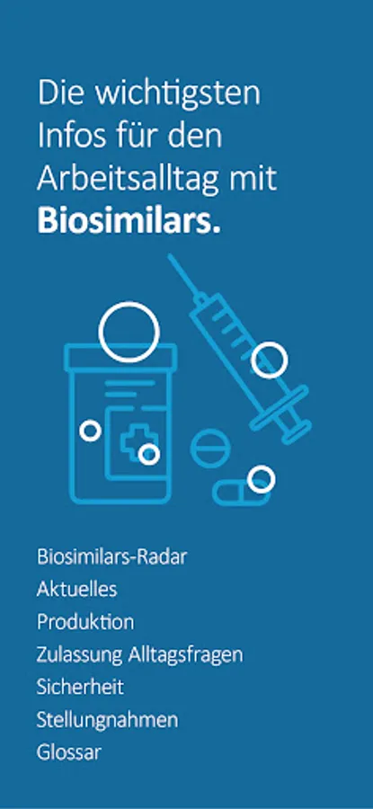 • Glossary: The most important terms on the topic of biosimilars are explained in the glossary. The quick entry into the world of biosimilars.
