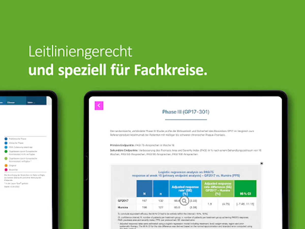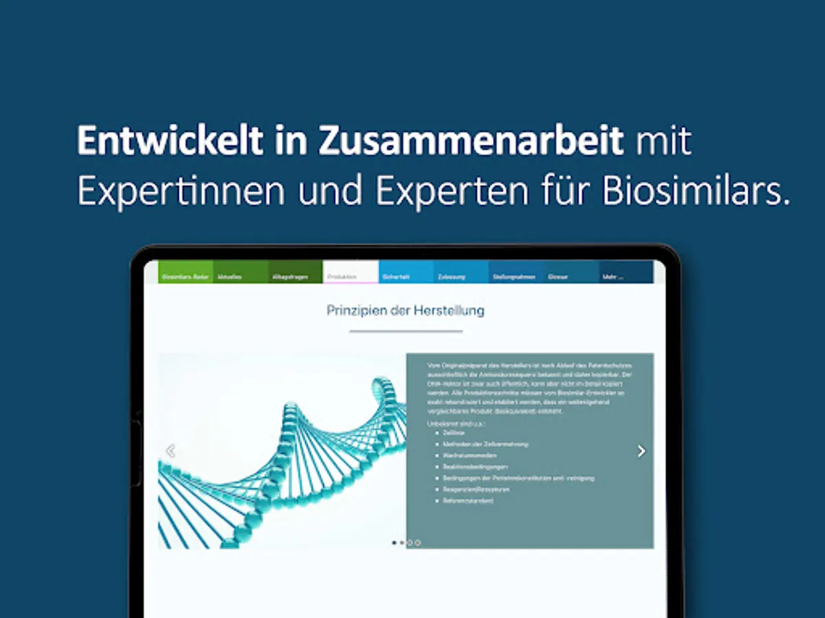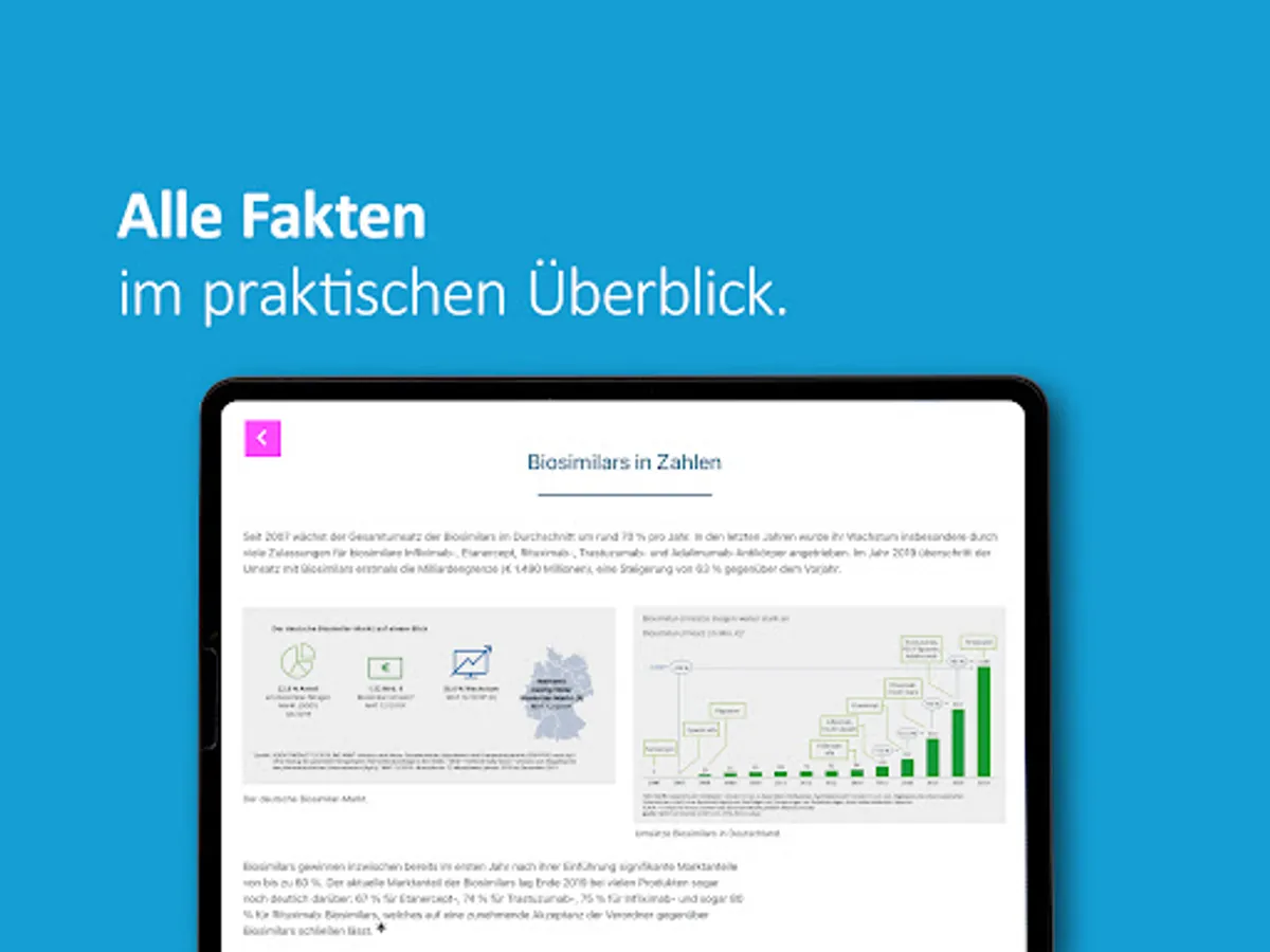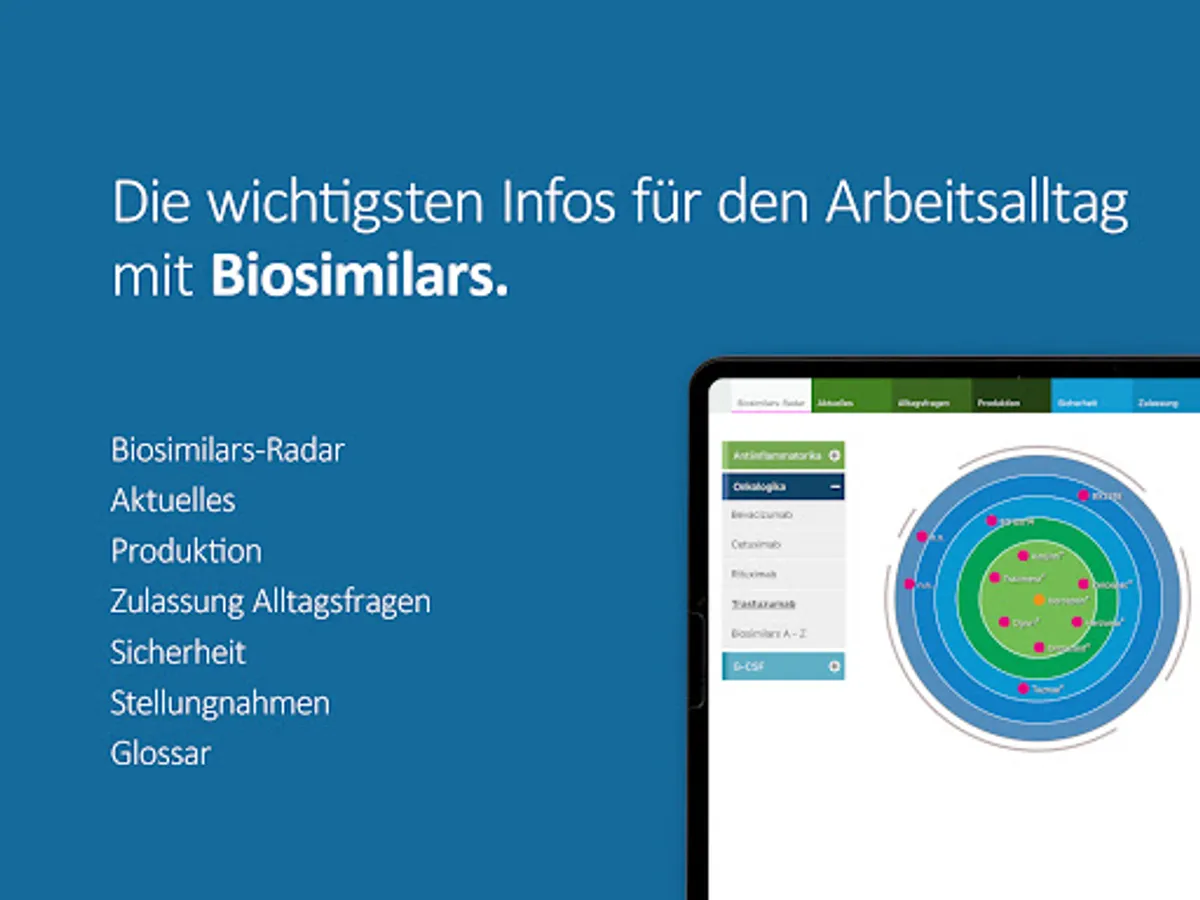 The app also contains a news feed with links to new data and current topics related to biosimilars.
