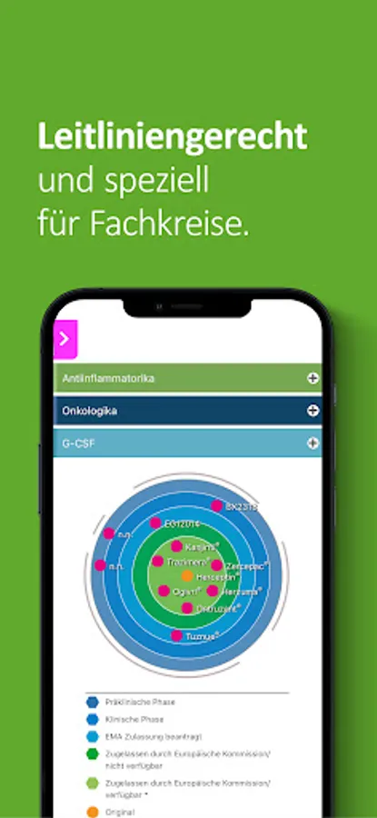 The app is for informational purposes only. It is intended only for specialist groups with an onkowissen.de login.