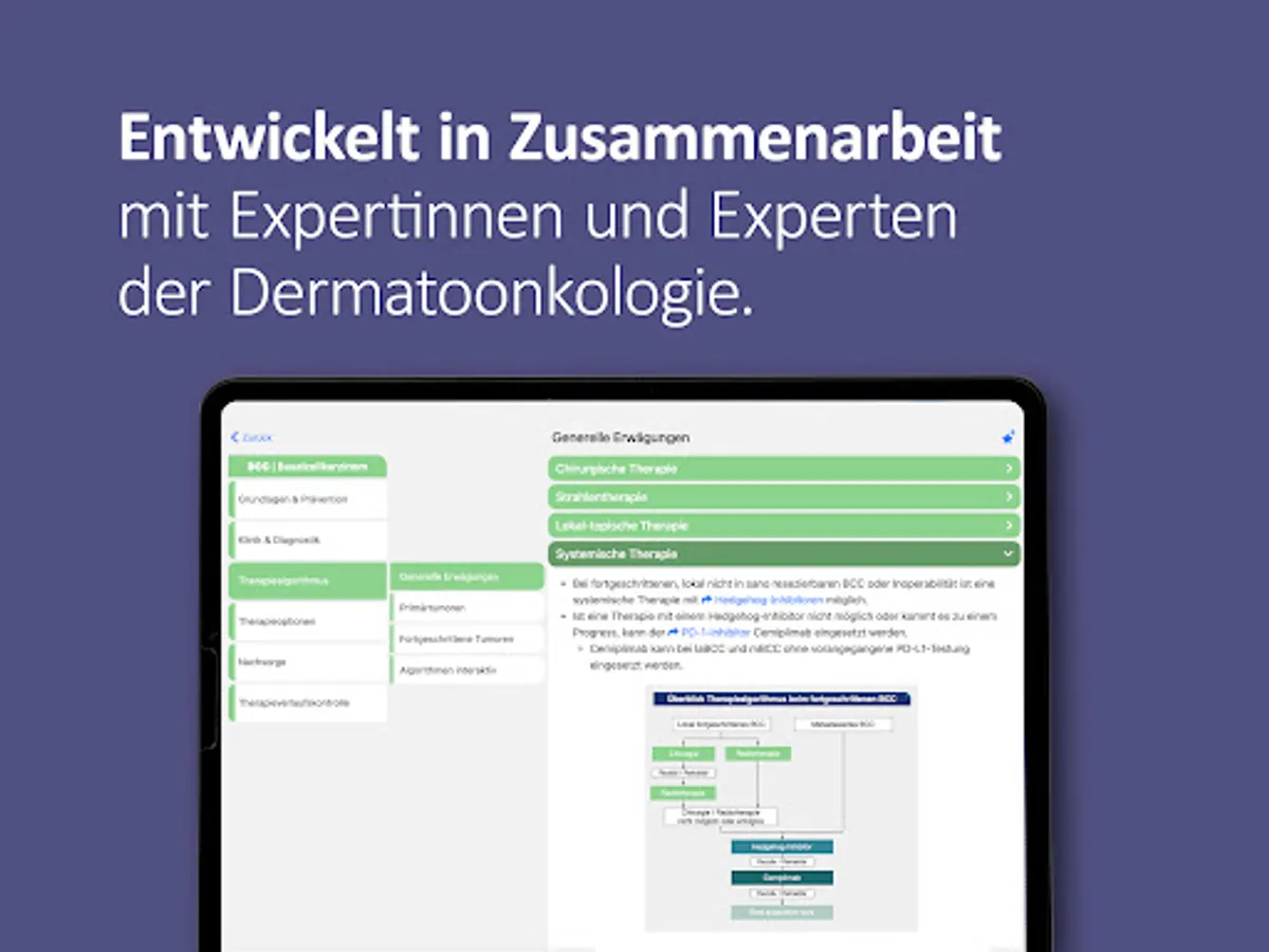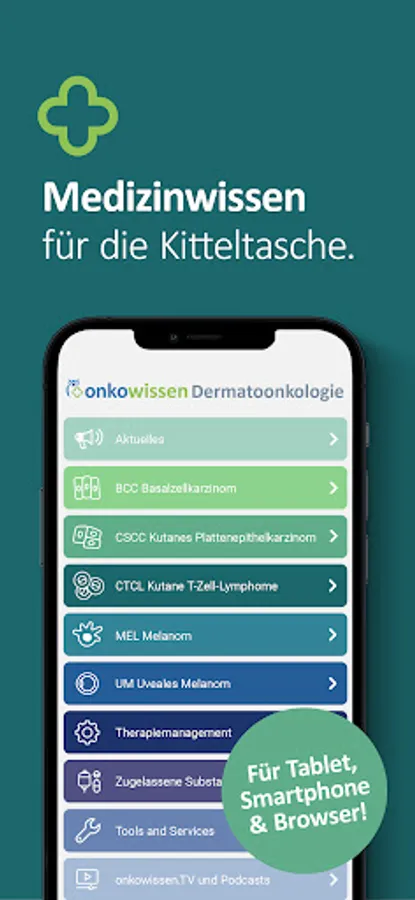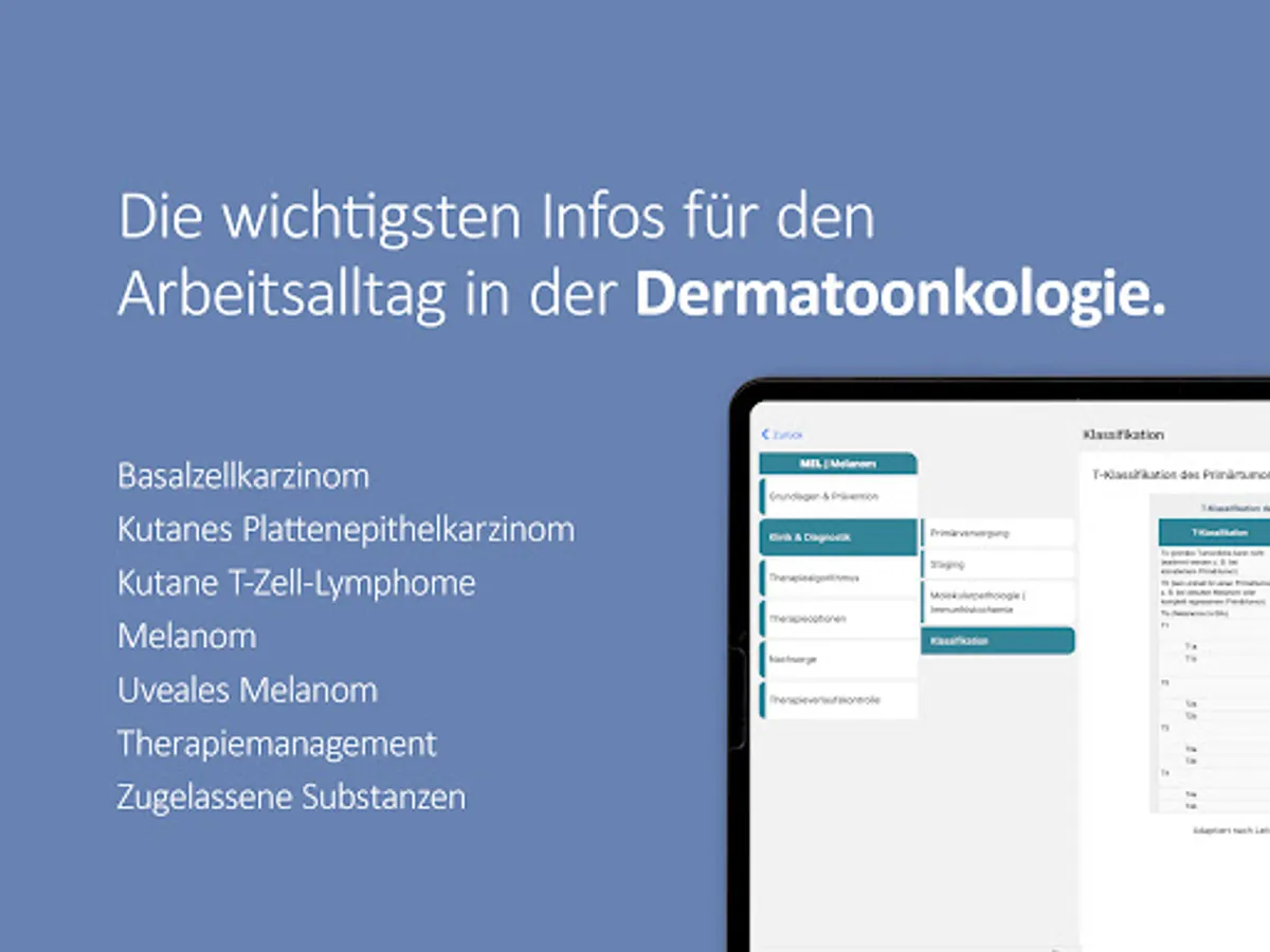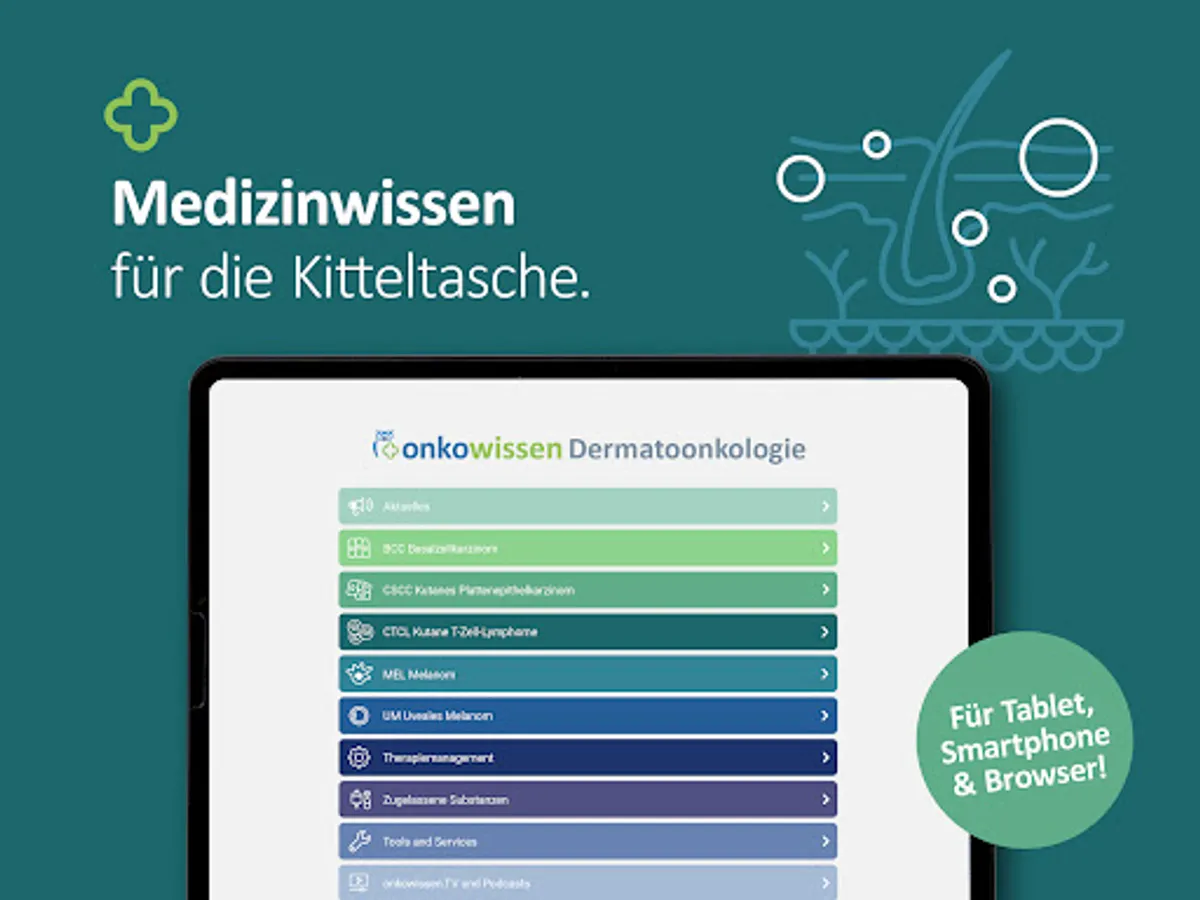 The onkowissen dermato-oncology app offers you digital, quick, easy and up-to-date access to extensive information about prevention, diagnostics, therapy options and aftercare in dermato-oncology. The app was developed and implemented in cooperation with medical experts. This app is intended only for professionals with an onkowissen.de login.