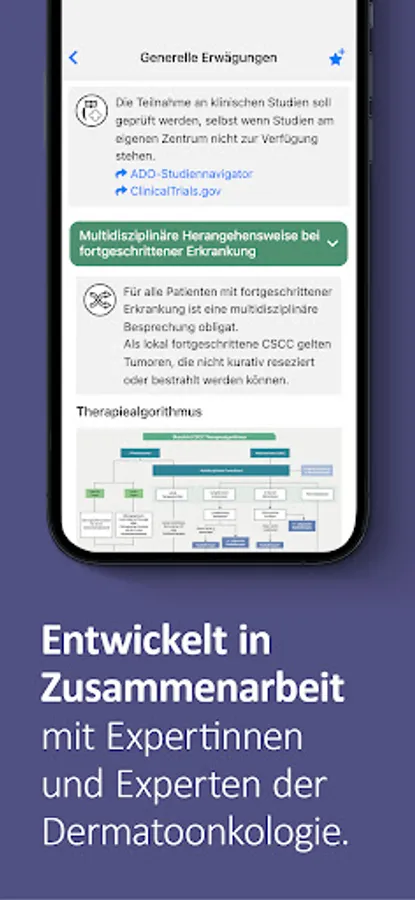 The app also contains a news feed with links to new data and current topics related to dermato-oncology. You will also find new information for everyday clinical practice under News.