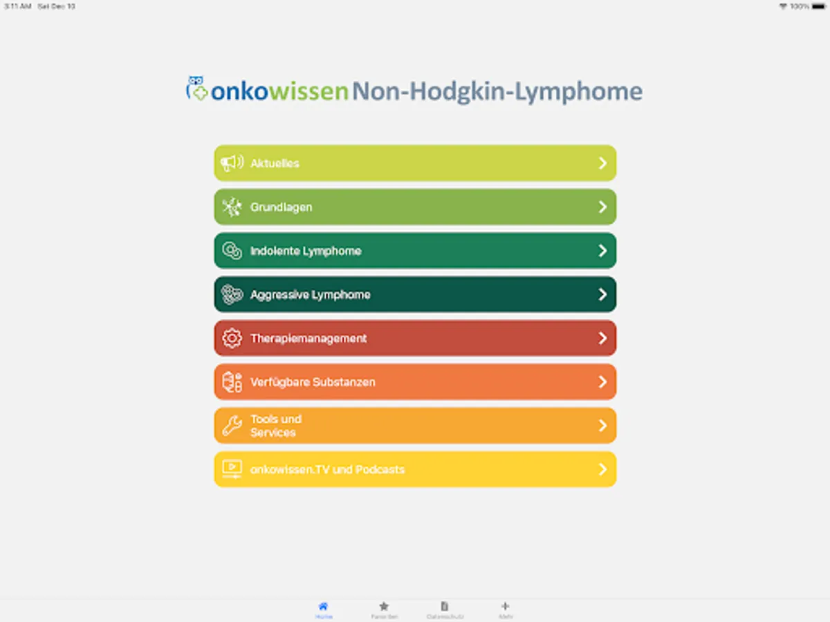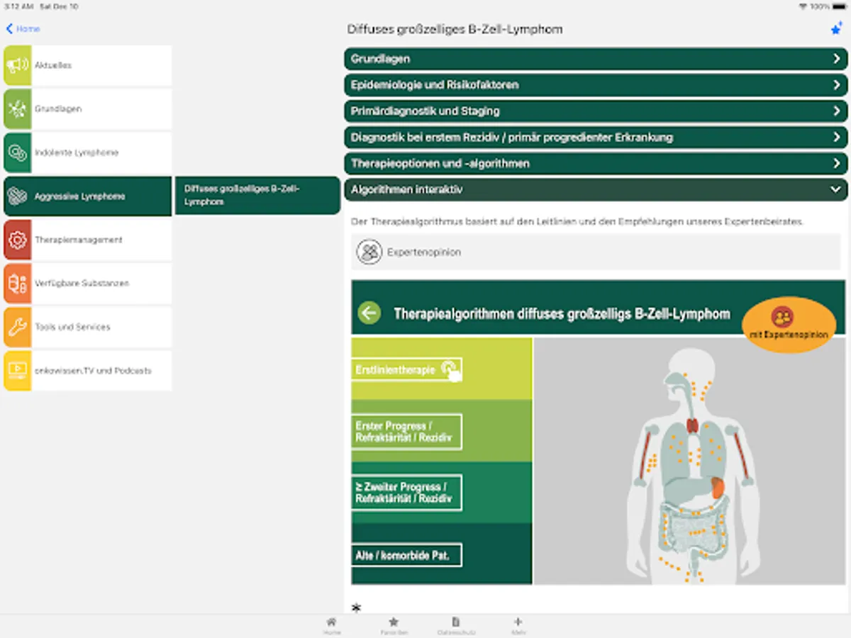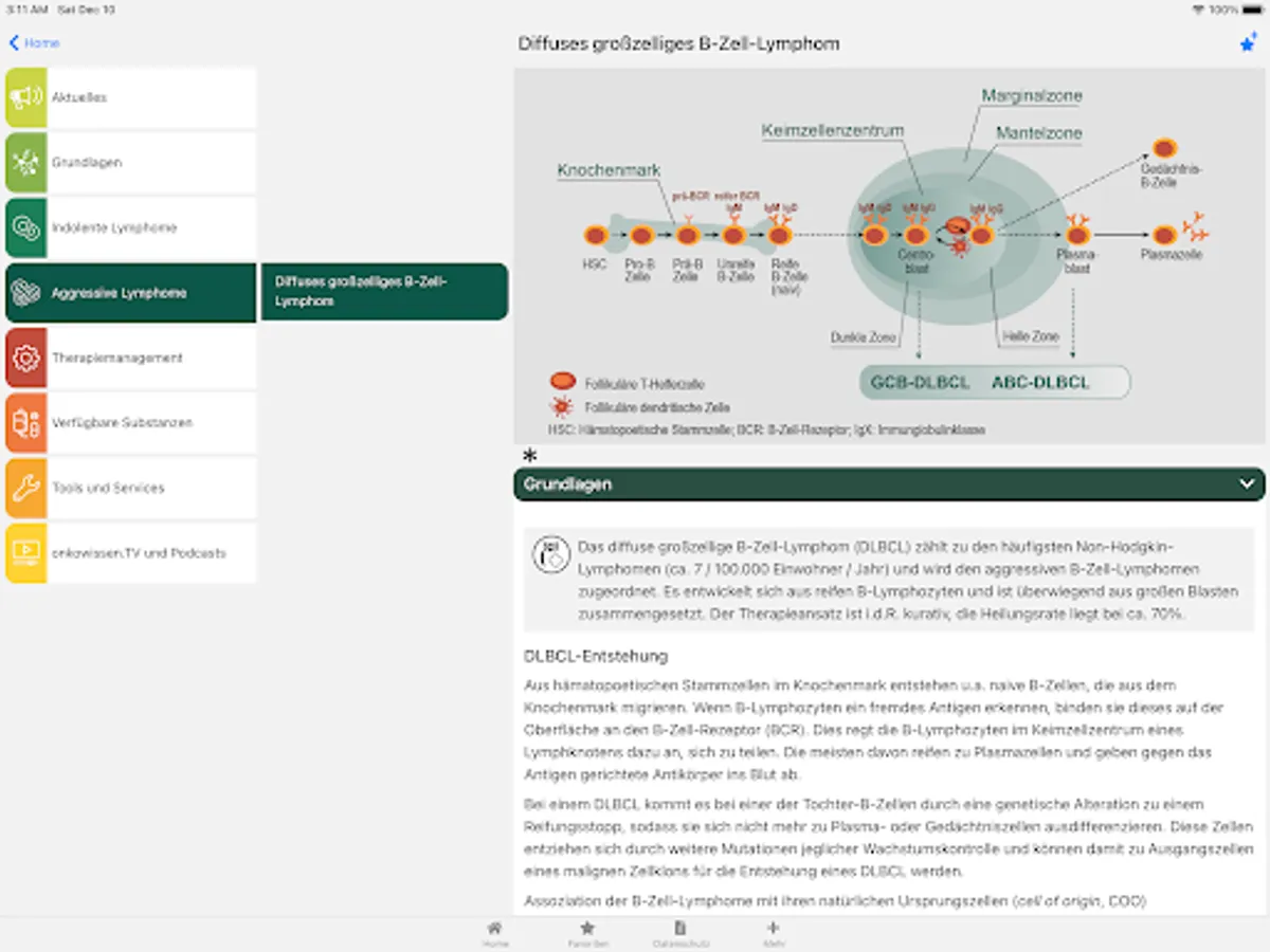This app is intended only for professionals with an onkowissen.de login. It is intended solely as an informational basis for the treatment of non-Hodgkin's lymphoma.
