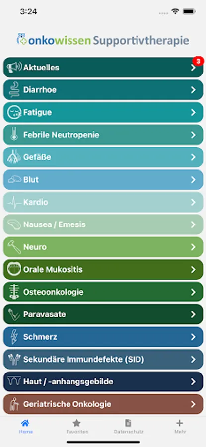 The onkowissen supportive therapy app offers you digital, fast, simple and up-to-date access to extensive information on supportive therapy for oncological patients. Developed in cooperation with interdisciplinary experts, with comprehensive and up-to-date information on side effect management!