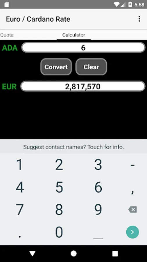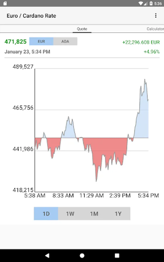 The view can be toggled between EUR / ADA and ADA / EUR.