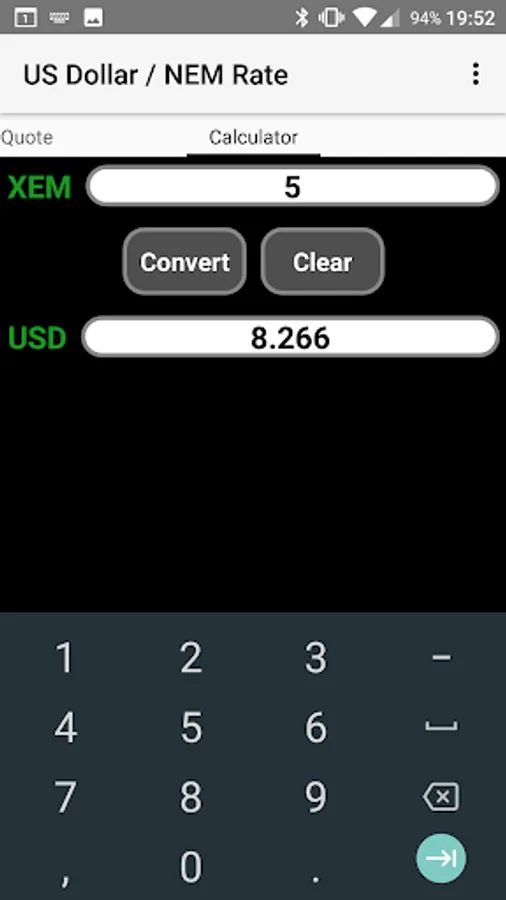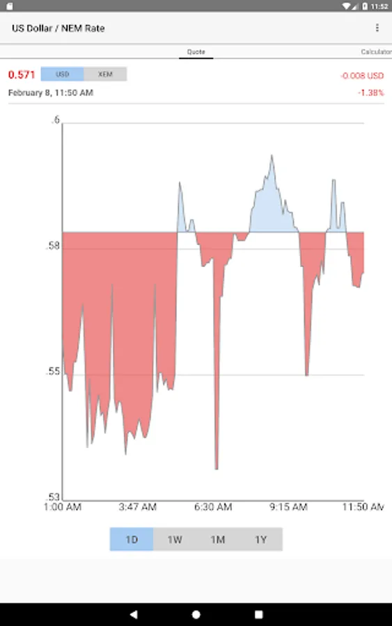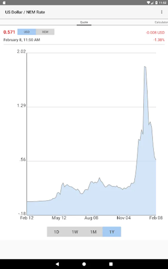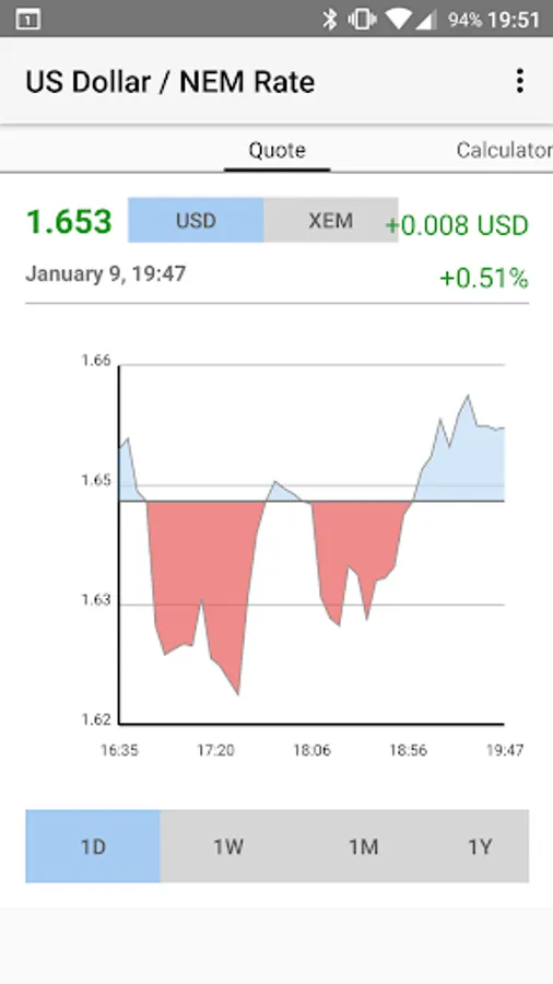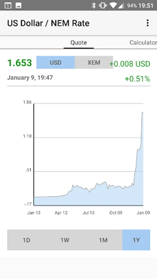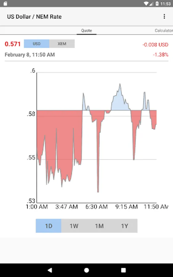 "US Dollar / NEM Rate" is always keeping you up to date on the changes of the current rate of the crypto currency NEM.