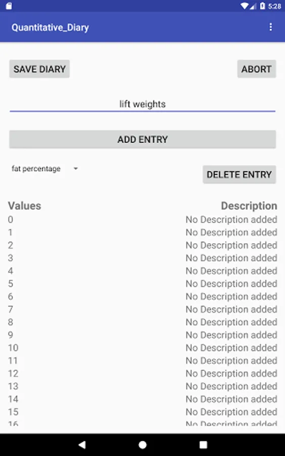 Quantitative Diary tries to solve this problem. It lets you create diary templates in which you have to define a numeric for your diary beforehand.