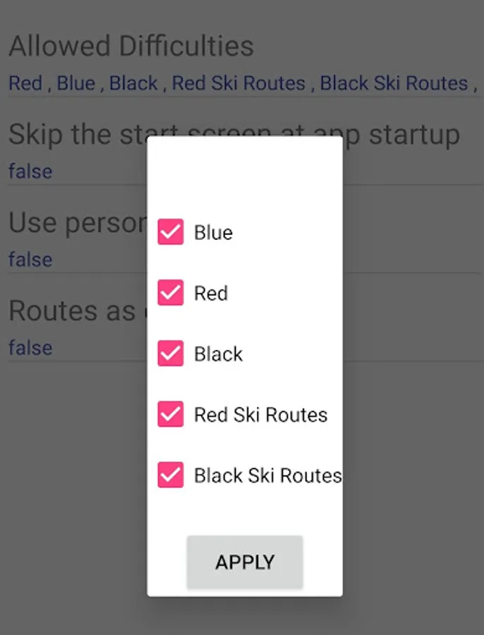 'Ski Connection Finder' also features the ability to exclude certain difficulty levels in the ski routes.