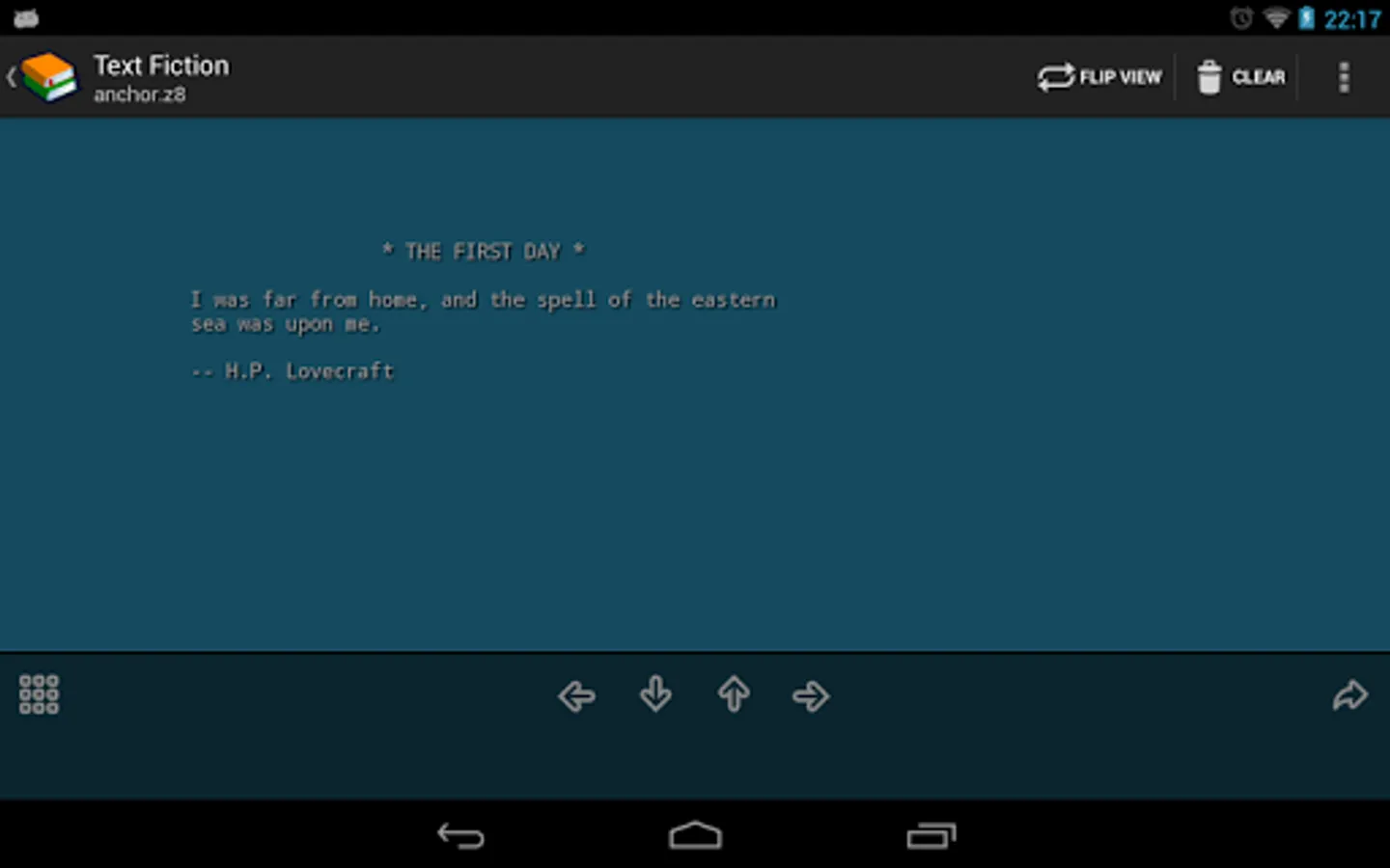 * A real battery saver due to low power consumption and no ads (TextFiction is one of the few games that don't need wifi).