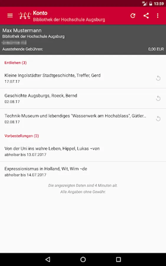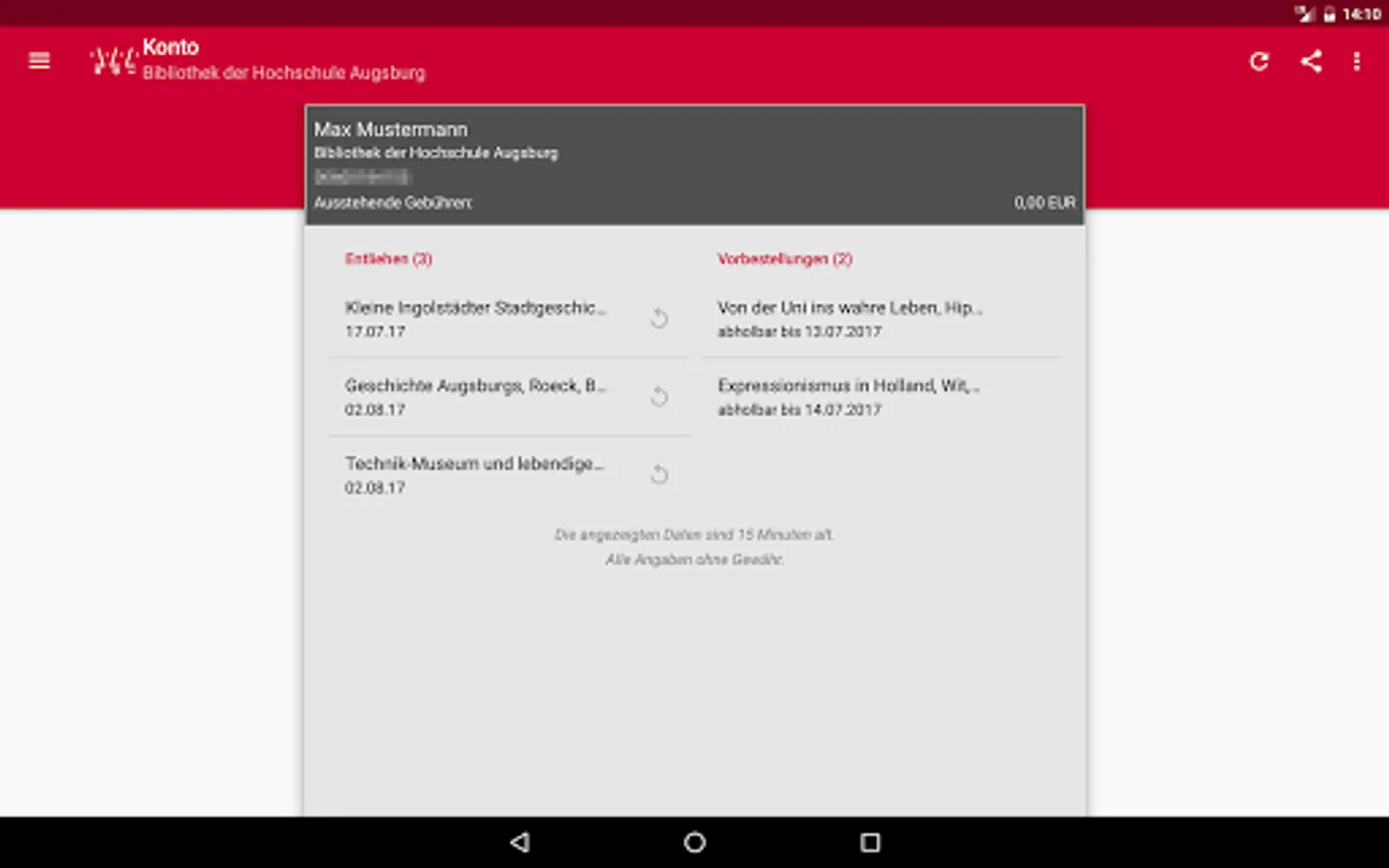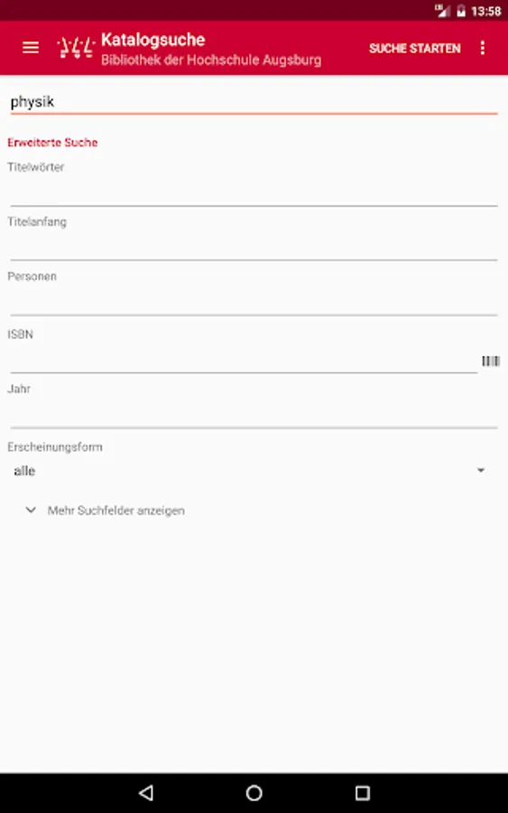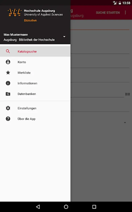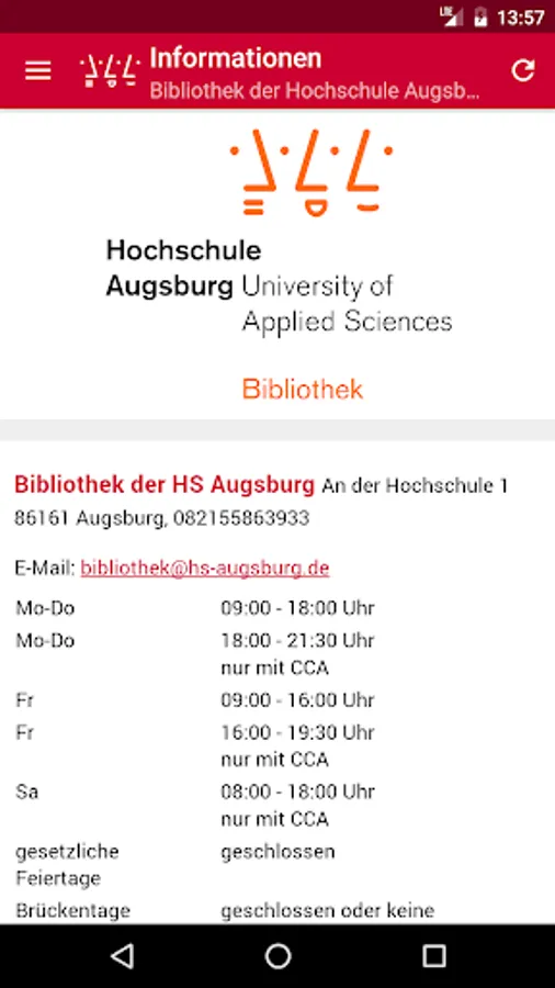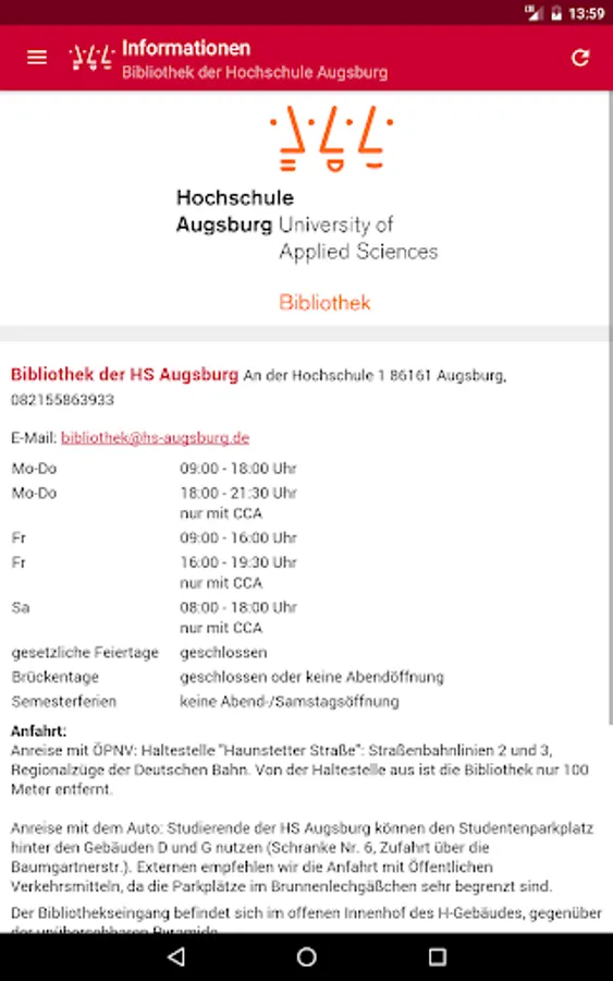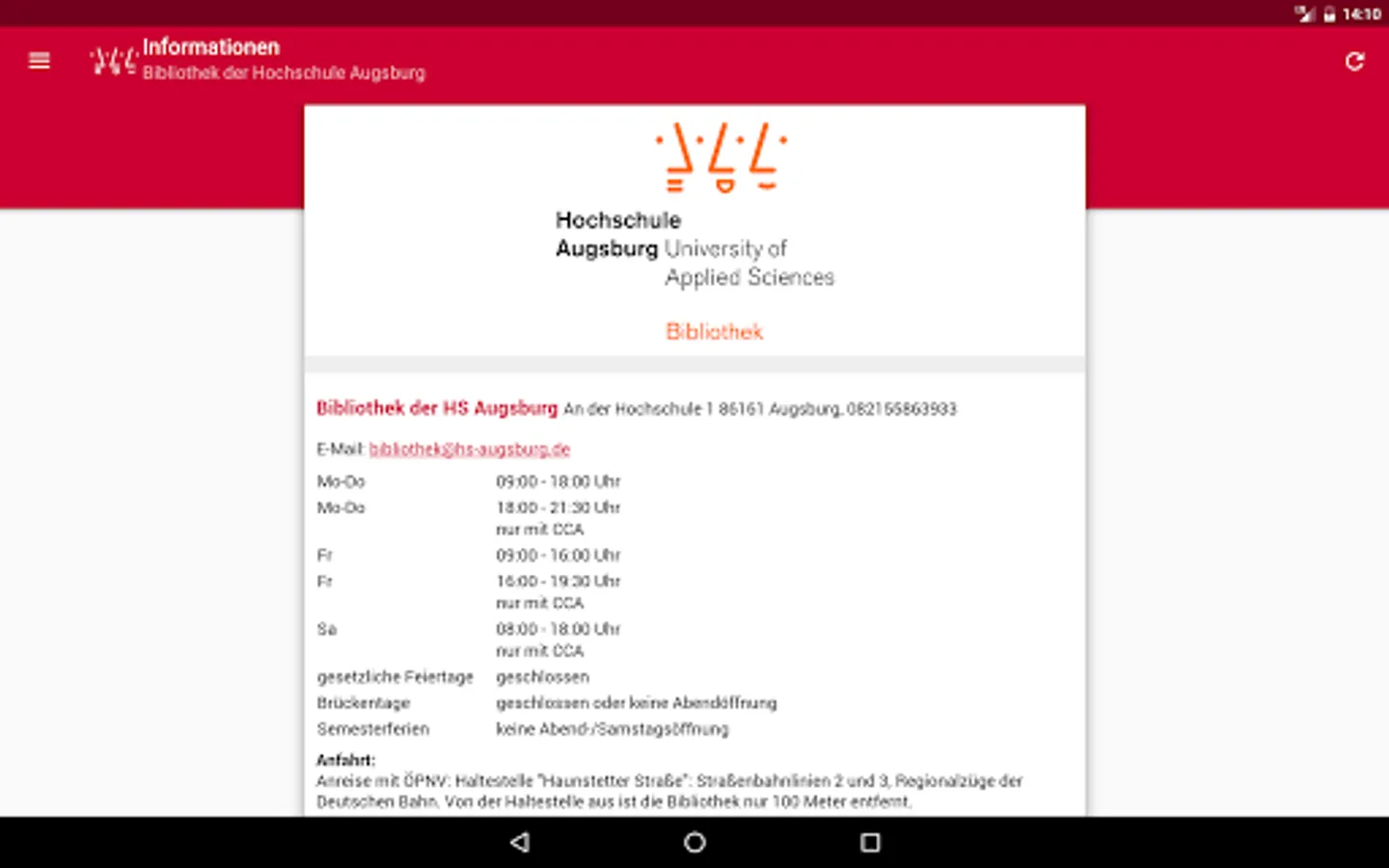This Android app gives you easy access from the road to the catalog and the account at the library of the University of Augsburg.