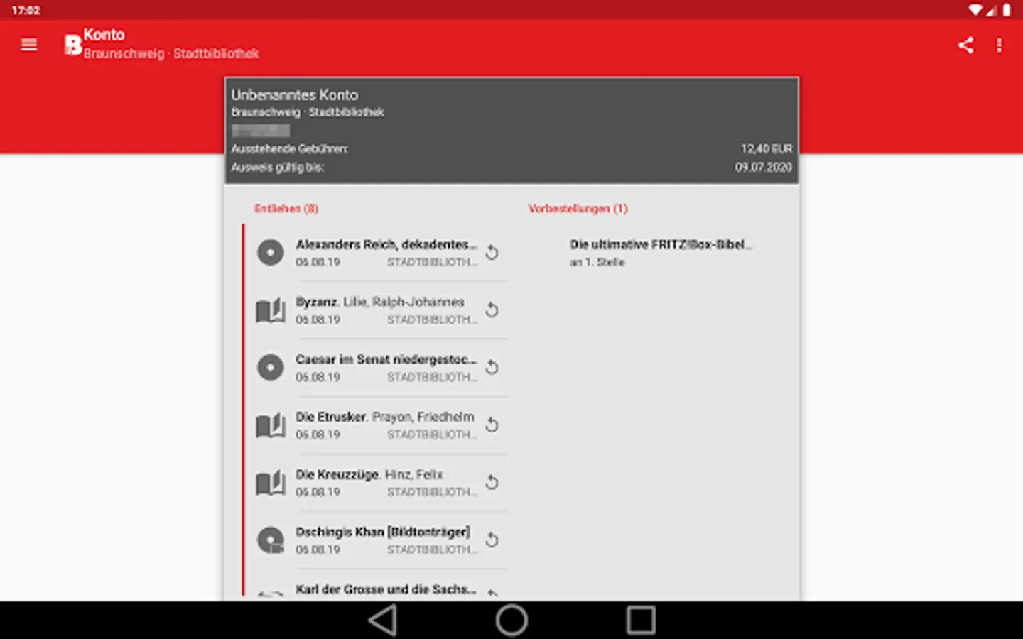 This Android app allows convenient access from the road to the catalog and the membership account of the City Library Braunschweig.