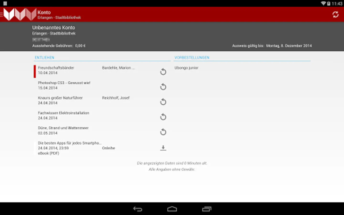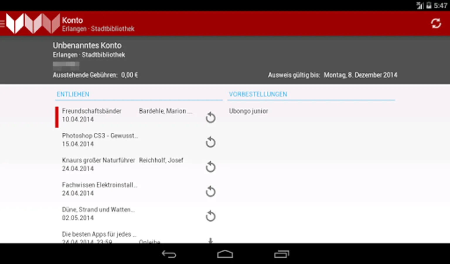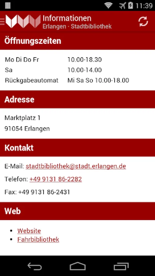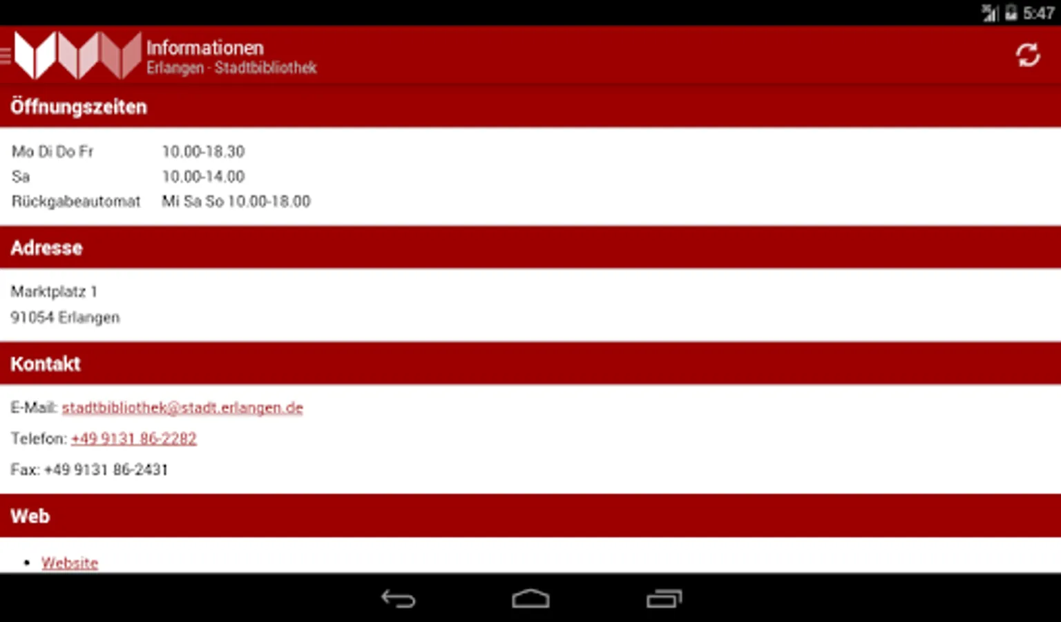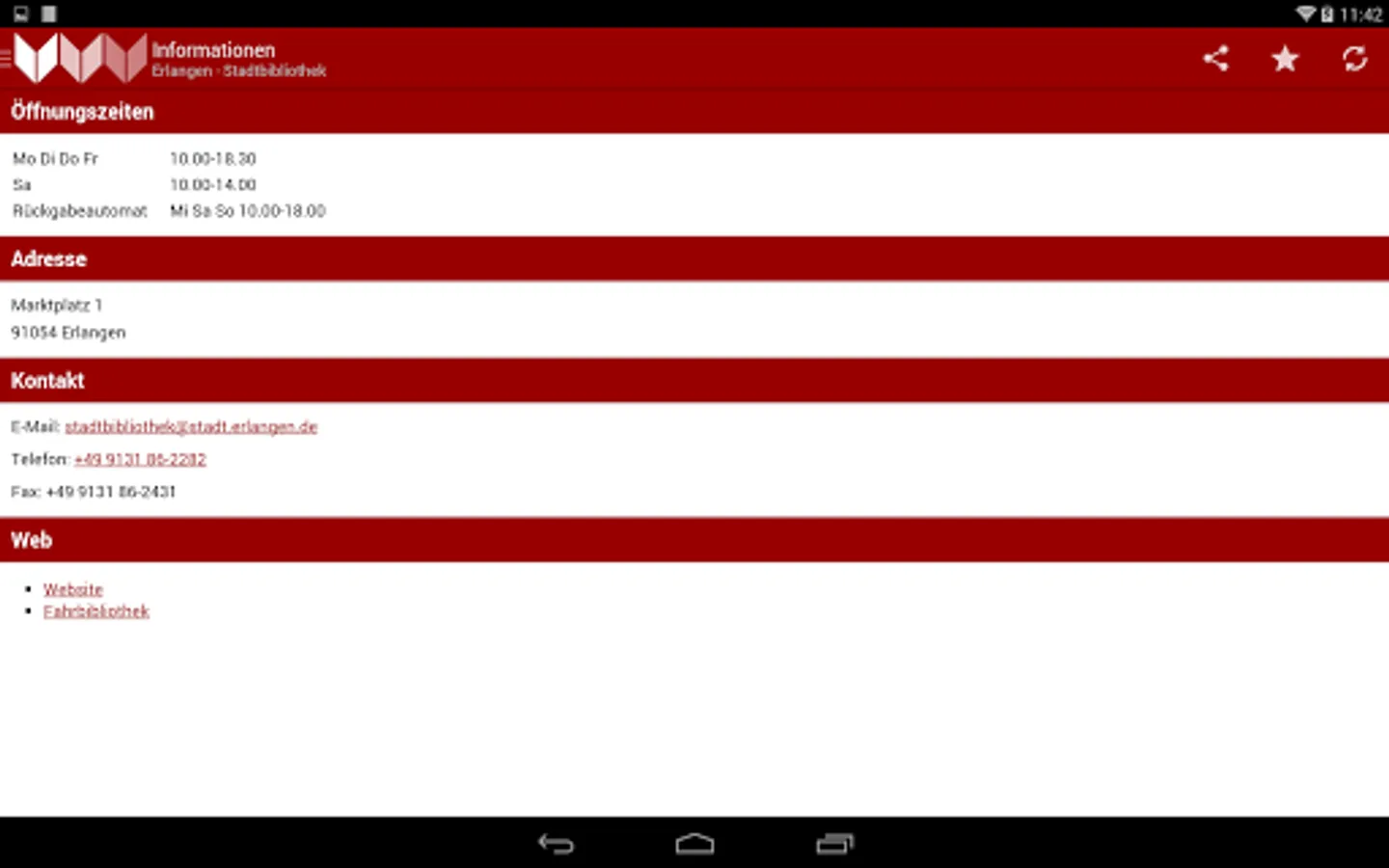This free Android app gives you easy access from the road to the catalog and the user account of the public library Erlangen.