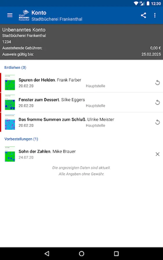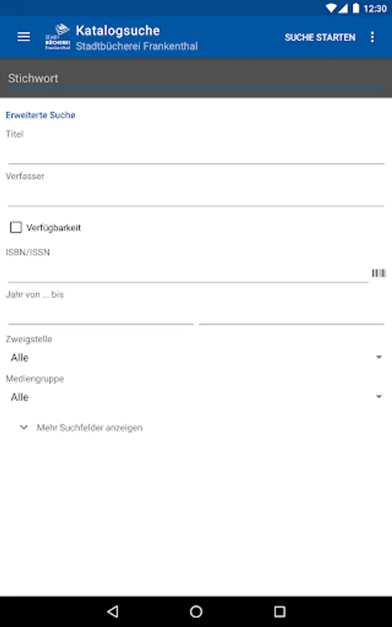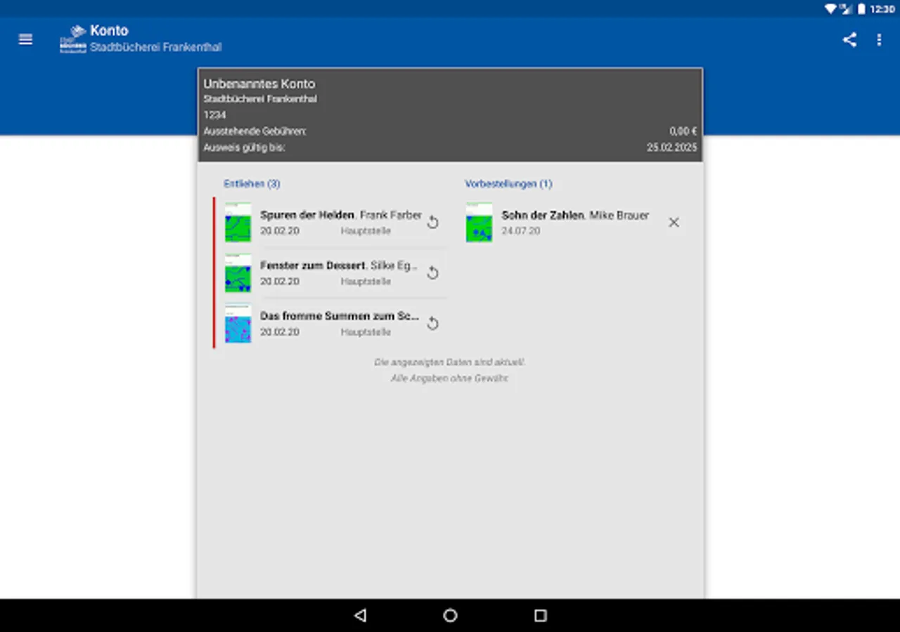 This Android app enables convenient access to the catalog and member account of the Frankenthal City Library on the go.